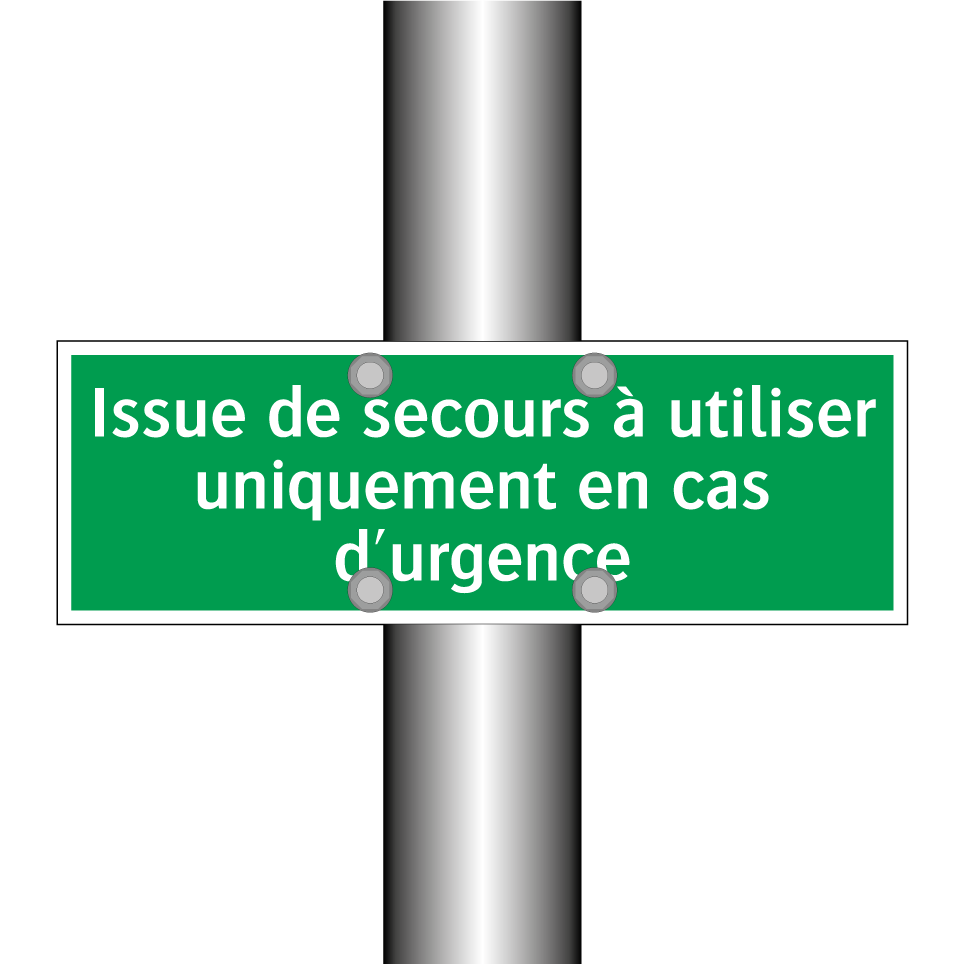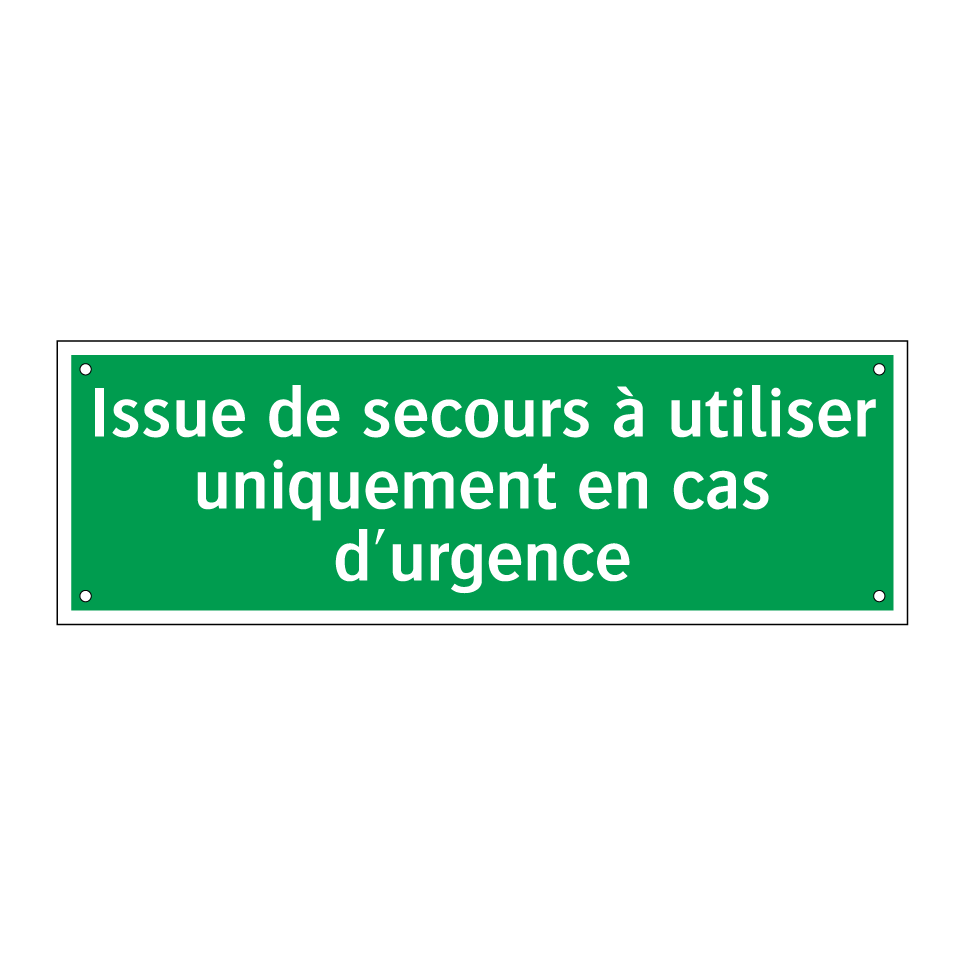 Panneau de secours avec le texte Issue de secours à utiliser uniquement en cas d'urgence
