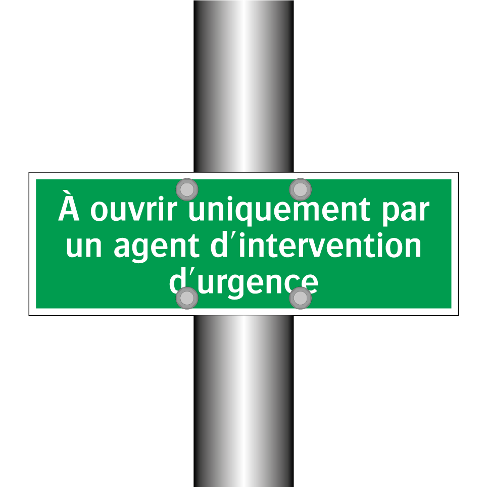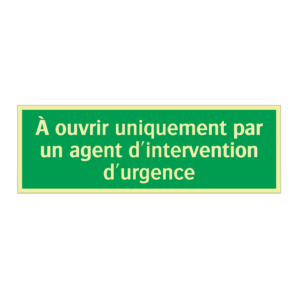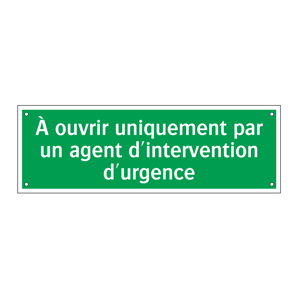 Panneau de secours avec le texte À ouvrir uniquement par un agent d'intervention d'urgence