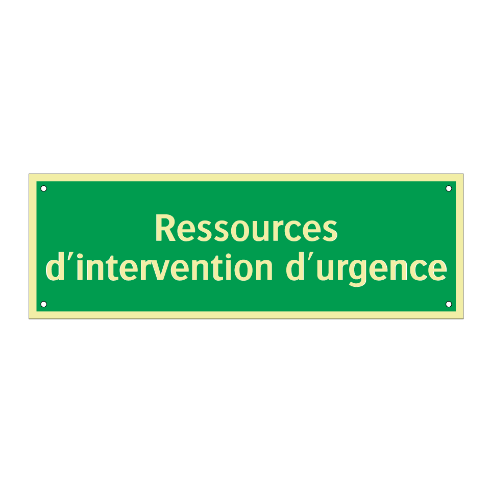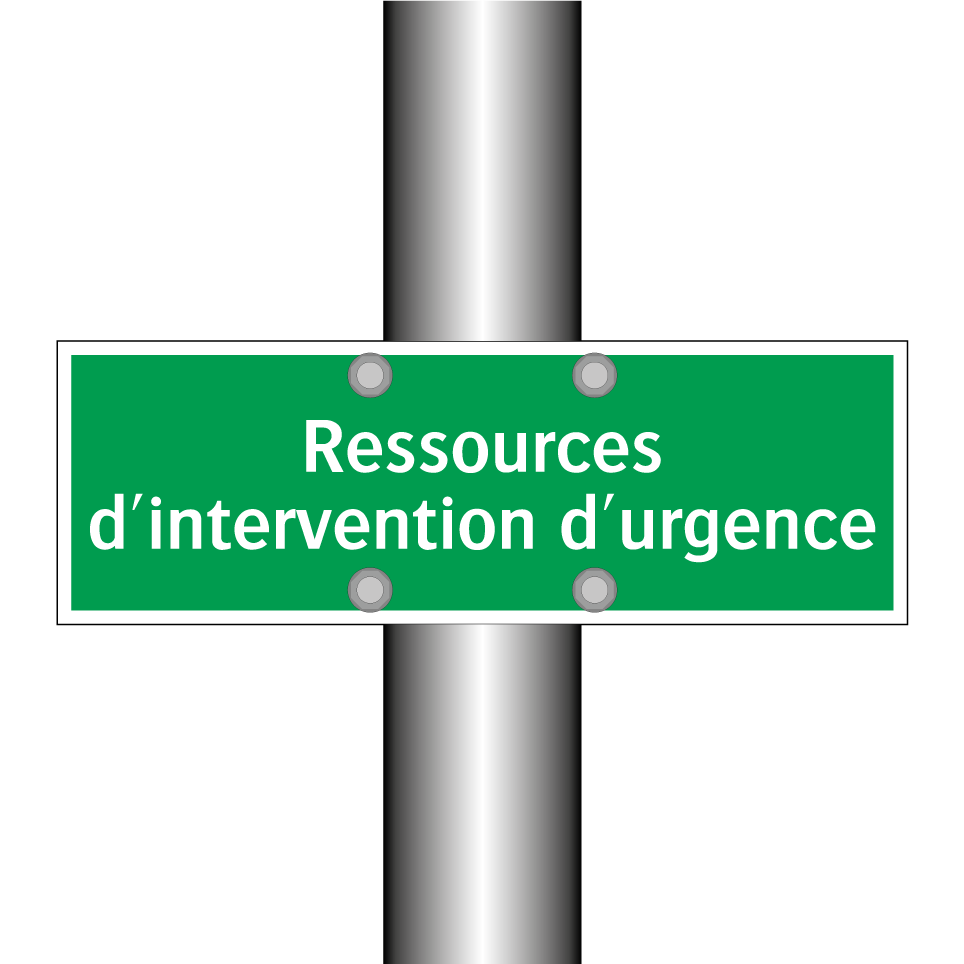 Panneau de secours avec le texte Ressources d'intervention d'urgence