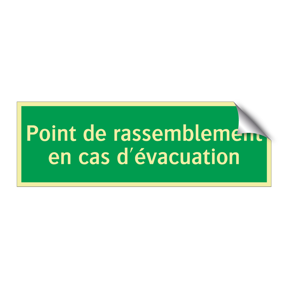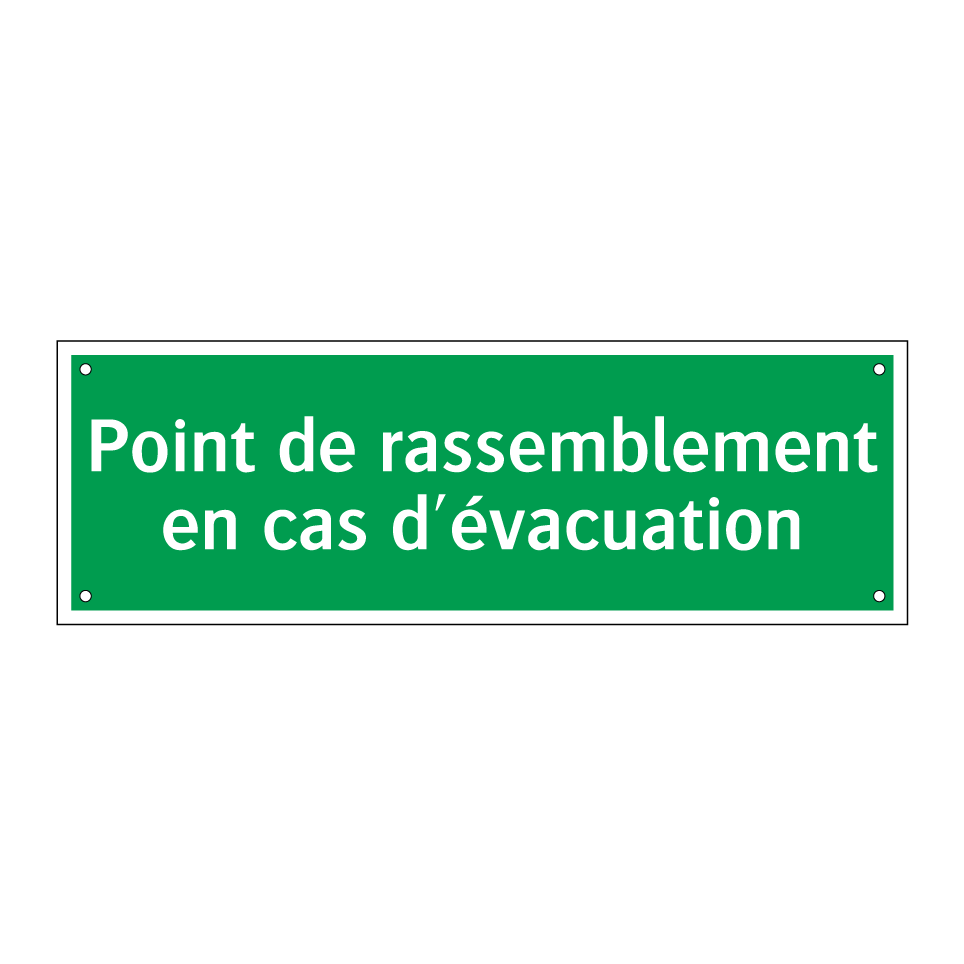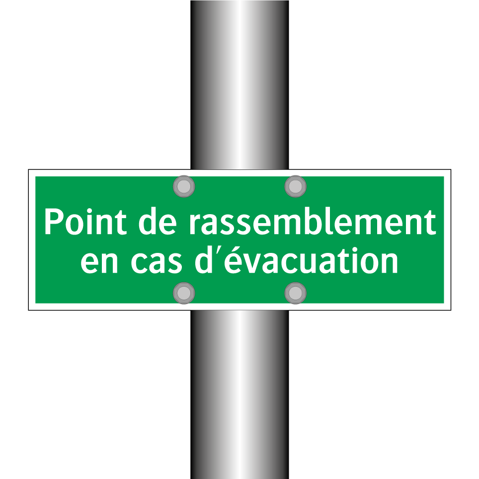 Panneau de secours avec le texte Point de rassemblement en cas d'évacuation
