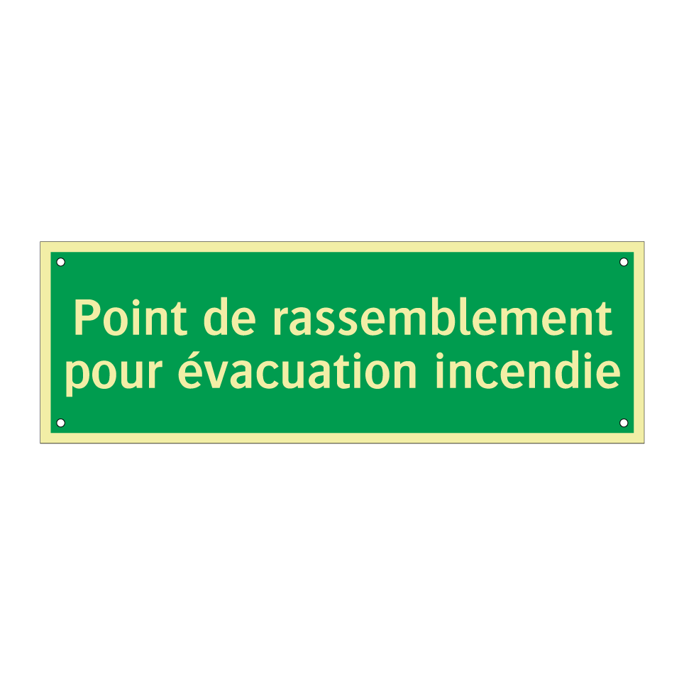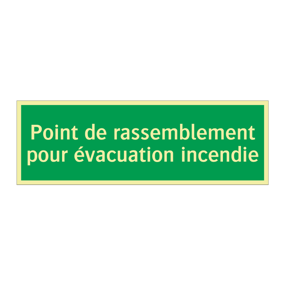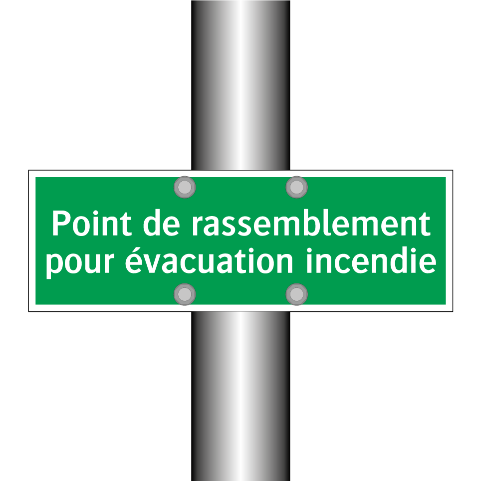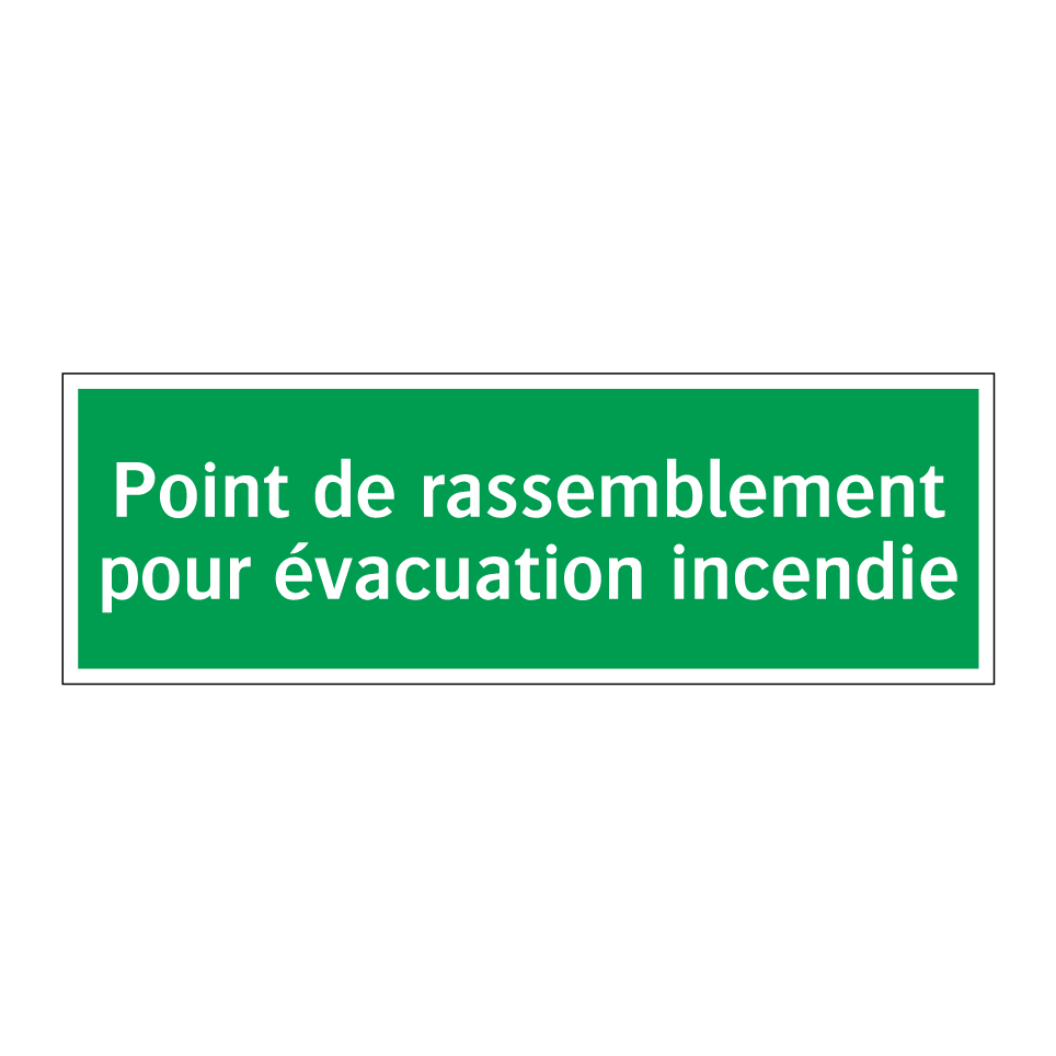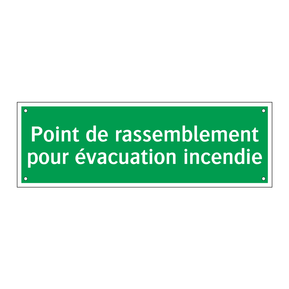 Panneau de secours avec le texte Point de rassemblement pour évacuation incendie