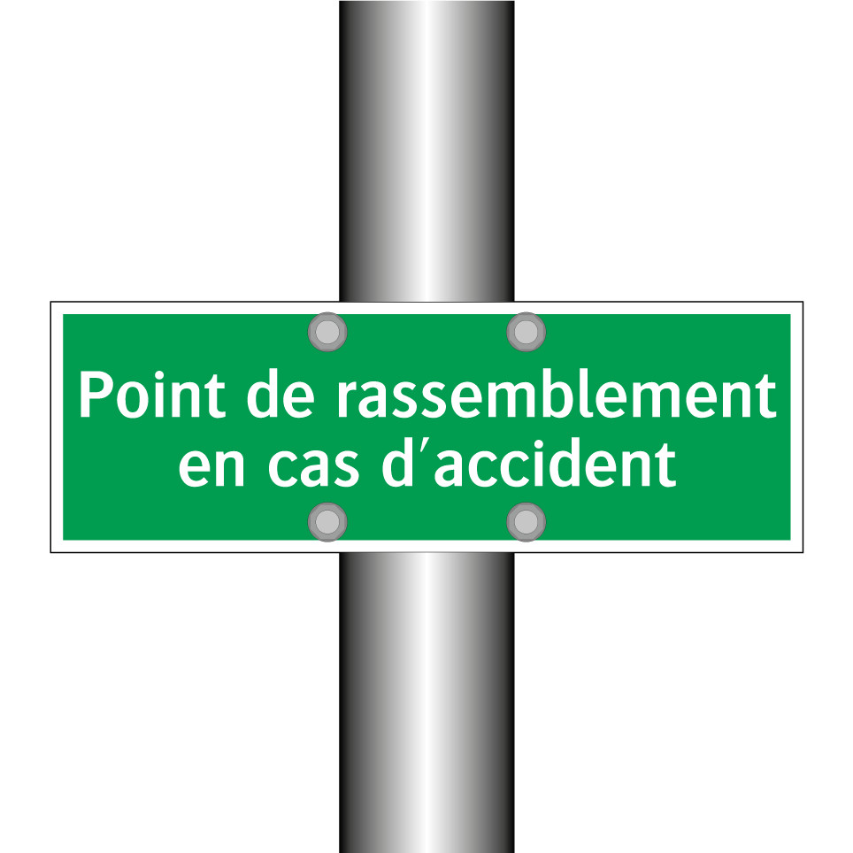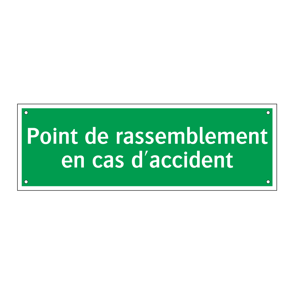 Panneau de secours avec le texte Point de rassemblement en cas d'accident
