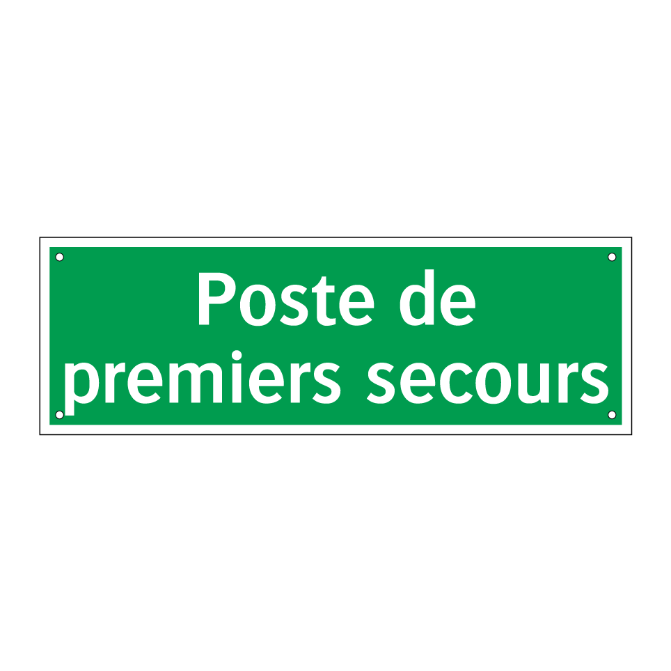 Cette enseigne de secours, avec son fond vert et son texte blanc, est idéale pour signaler un poste de premiers secours. Elle est conçue pour être placée dans des lieux publics tels que les bureaux, les écoles, les centres commerciaux et les installations industrielles. Son objectif principal est de guider rapidement les personnes vers les équipements de premiers secours en cas d'urgence. Grâce à sa visibilité accrue, elle assure une identification facile et rapide, contribuant ainsi à la sécurité et à la réactivité en situation critique.
