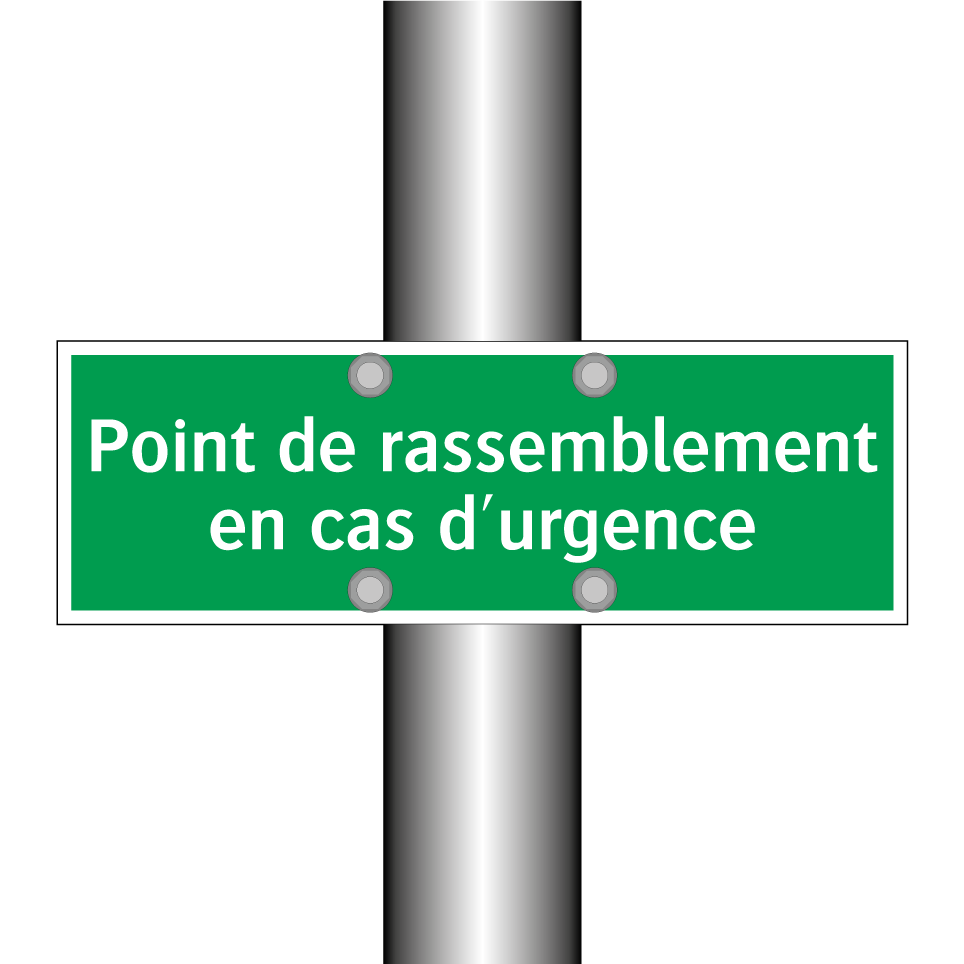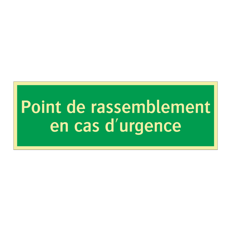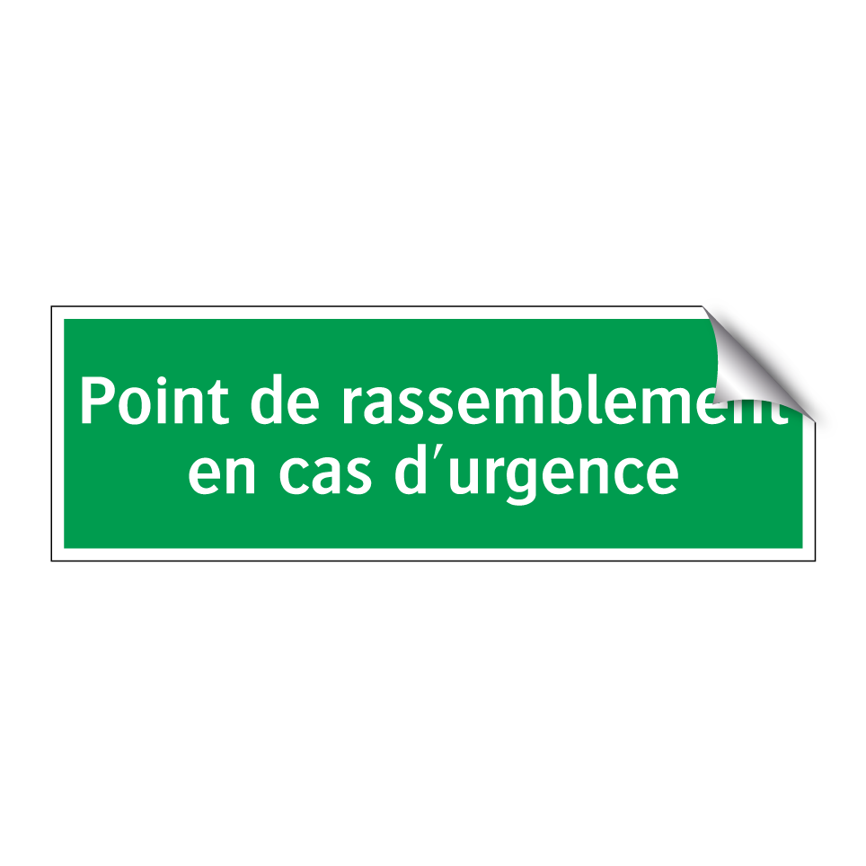 Panneau de secours avec le texte Point de rassemblement en cas d'urgence