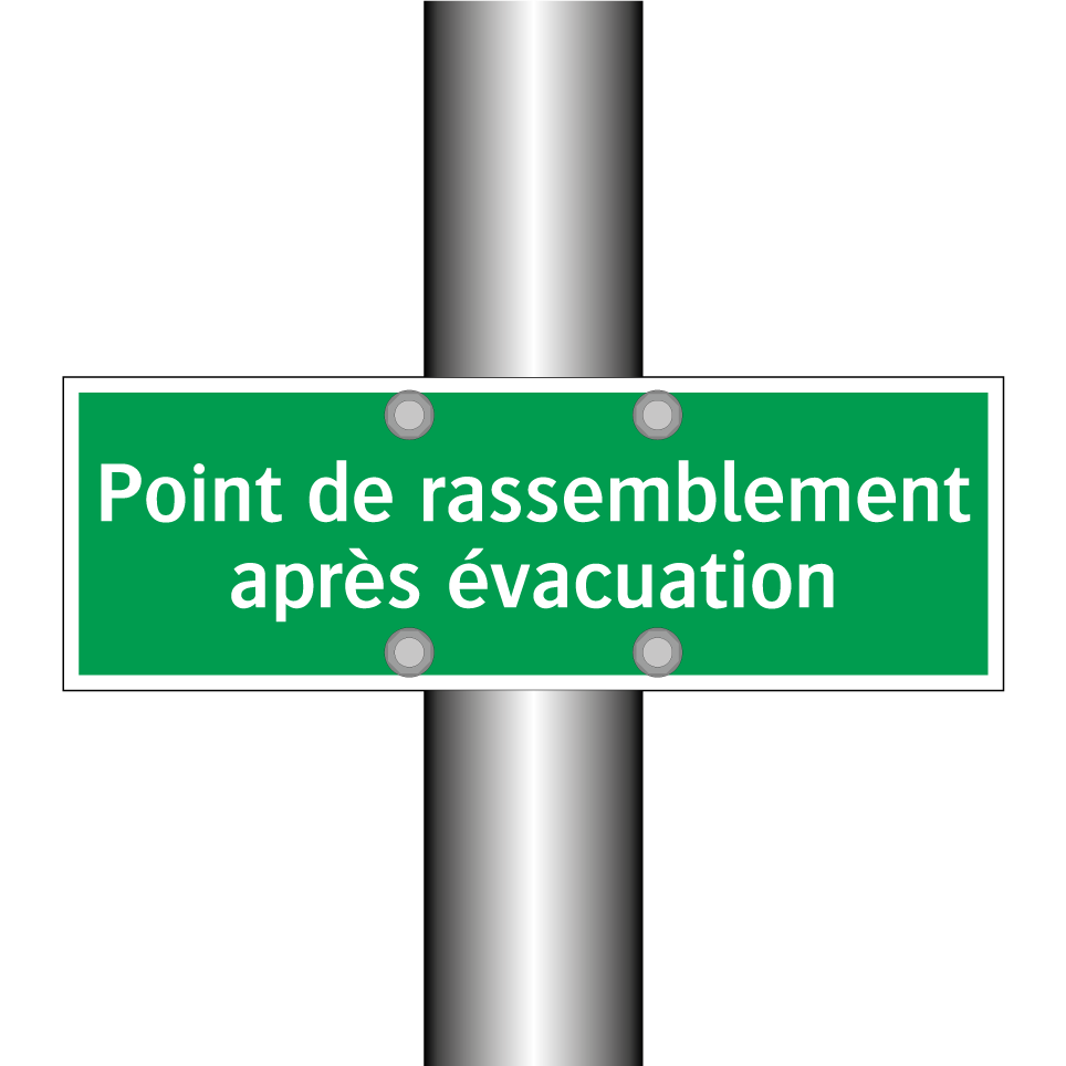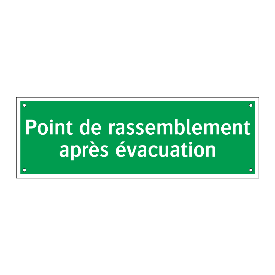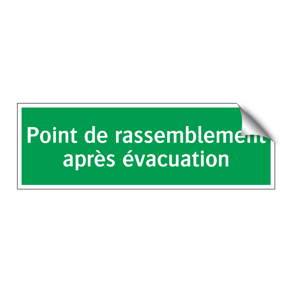 Panneau de secours avec le texte Point de rassemblement après évacuation