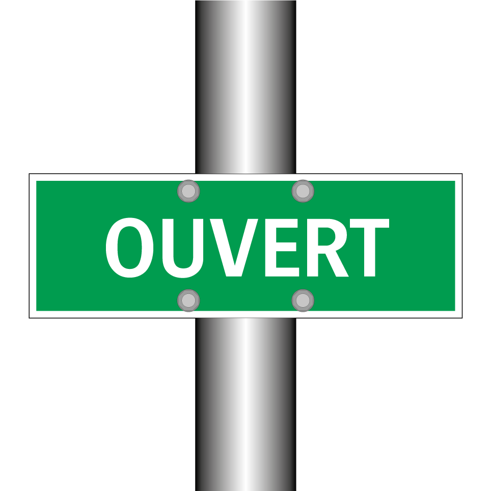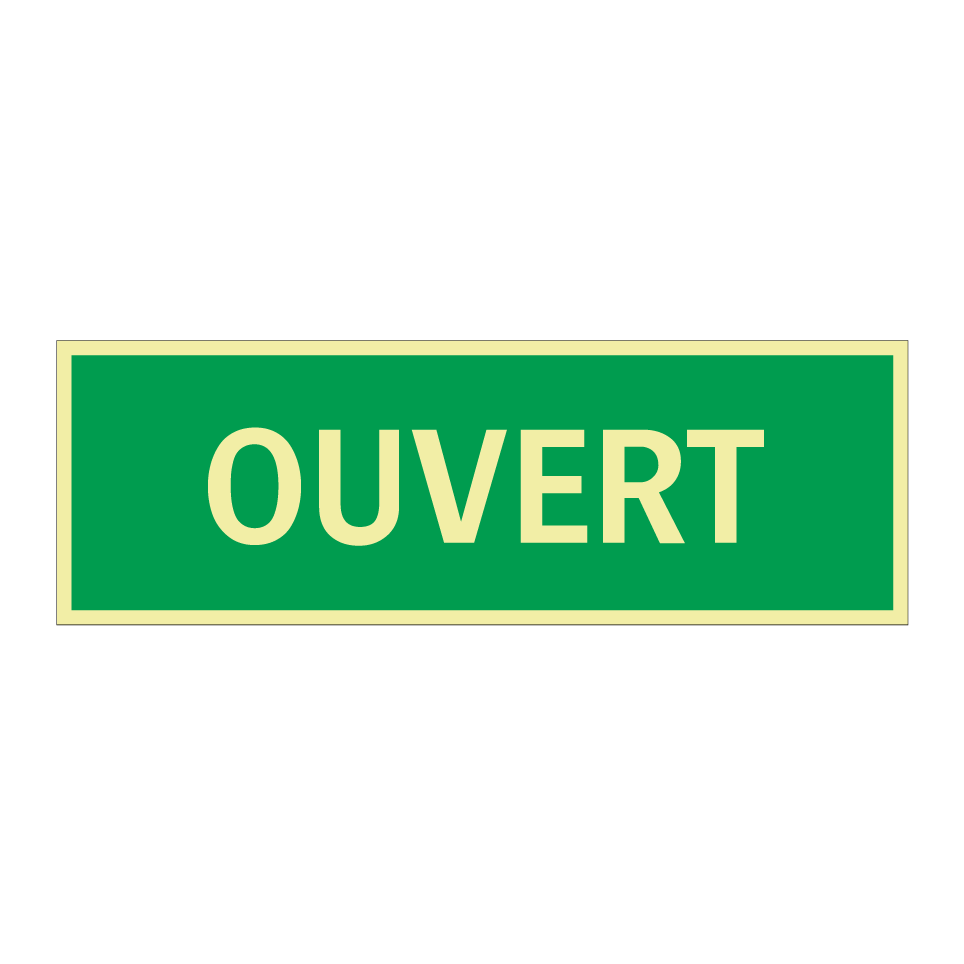 Panneau de secours avec le texte OUVERT