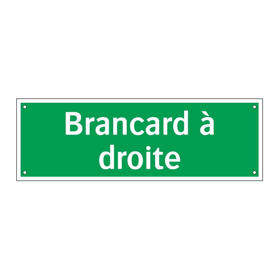 Cette signalisation d'urgence, avec son fond vert et son texte blanc, est idéale pour indiquer la direction d'un brancard vers la droite dans des environnements tels que les hôpitaux, les cliniques ou les centres de soins. Elle joue un rôle crucial en guidant rapidement le personnel médical et les visiteurs vers l'équipement nécessaire en cas d'urgence. Placée stratégiquement dans les couloirs, près des sorties ou dans les zones de premiers secours, elle assure une visibilité optimale et contribue à la sécurité des lieux. Cette pancarte est essentielle pour une orientation efficace et rapide dans des situations critiques.
