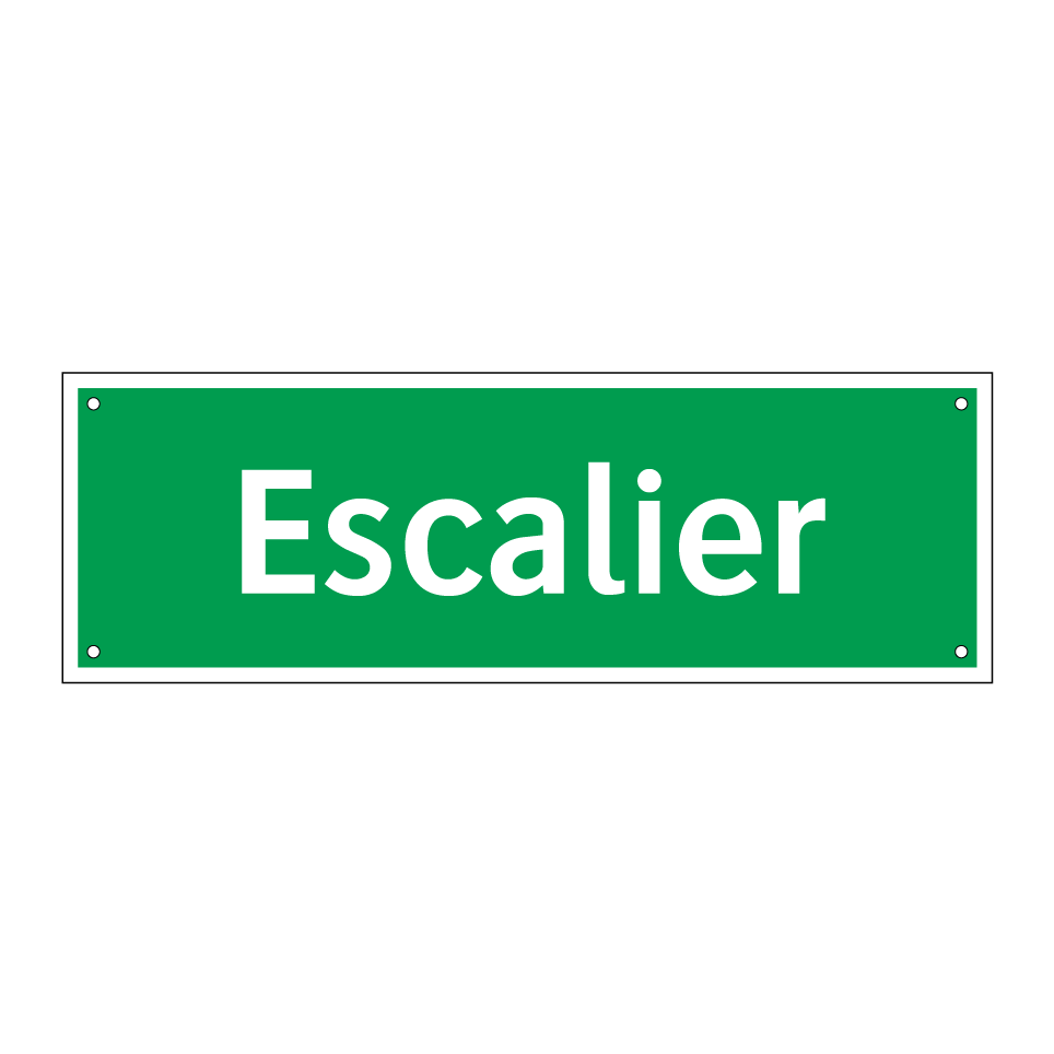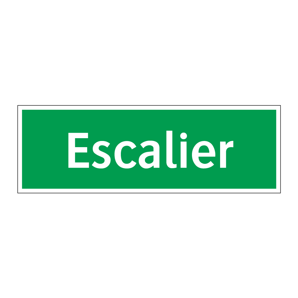 Cette enseigne de sécurité, avec son fond vert et son texte blanc, est idéale pour indiquer la présence d'un escalier dans les bâtiments publics ou privés. Elle est essentielle pour guider les occupants vers les issues de secours en cas d'urgence. Parfaite pour être installée dans les couloirs, près des sorties ou à proximité des escaliers, elle assure une visibilité optimale grâce à son contraste de couleurs. Utilisée dans les immeubles de bureaux, les centres commerciaux ou les établissements scolaires, elle contribue à la sécurité en facilitant l'évacuation rapide et ordonnée.