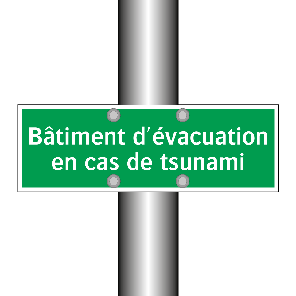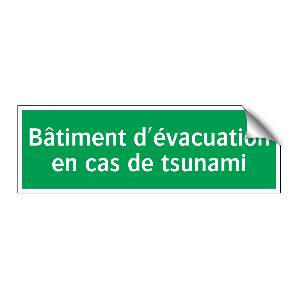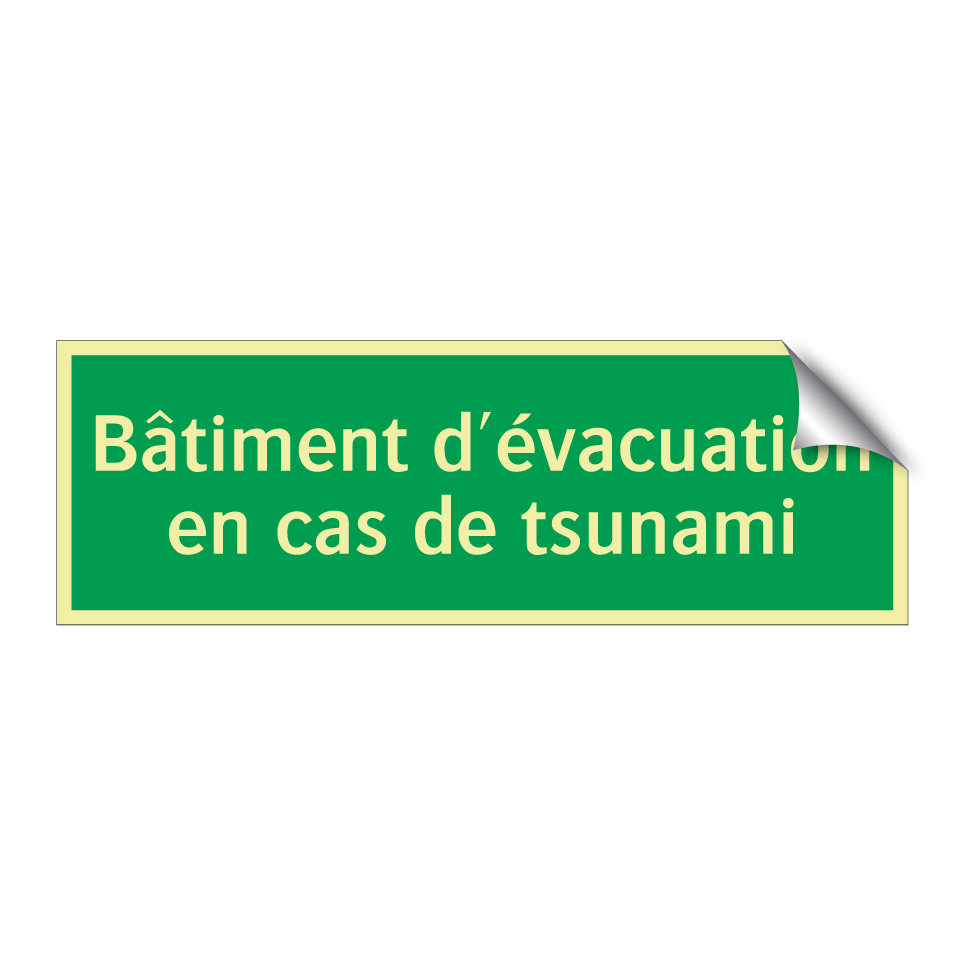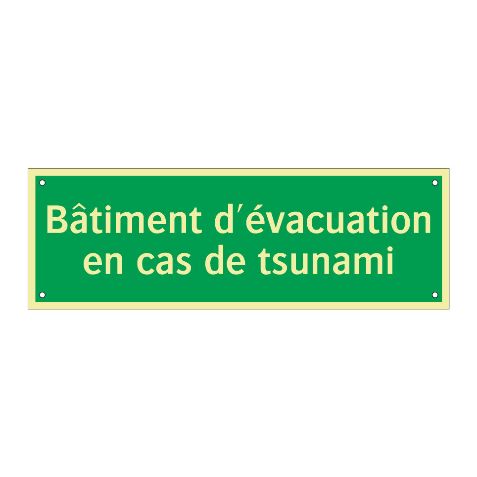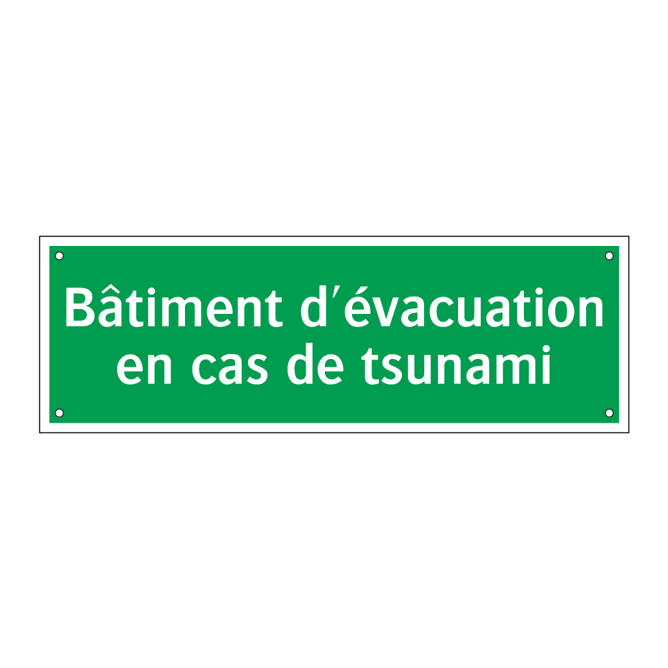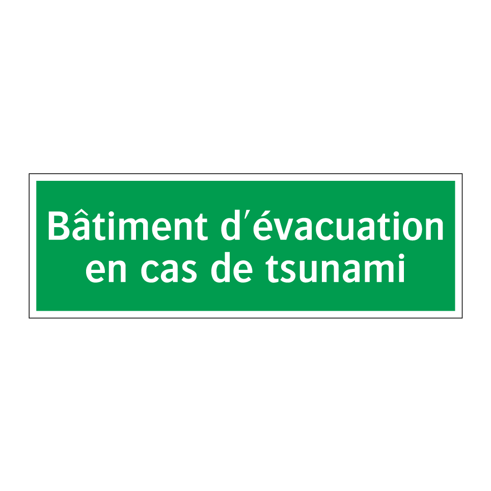 Panneau de secours avec le texte Bâtiment d'évacuation en cas de tsunami