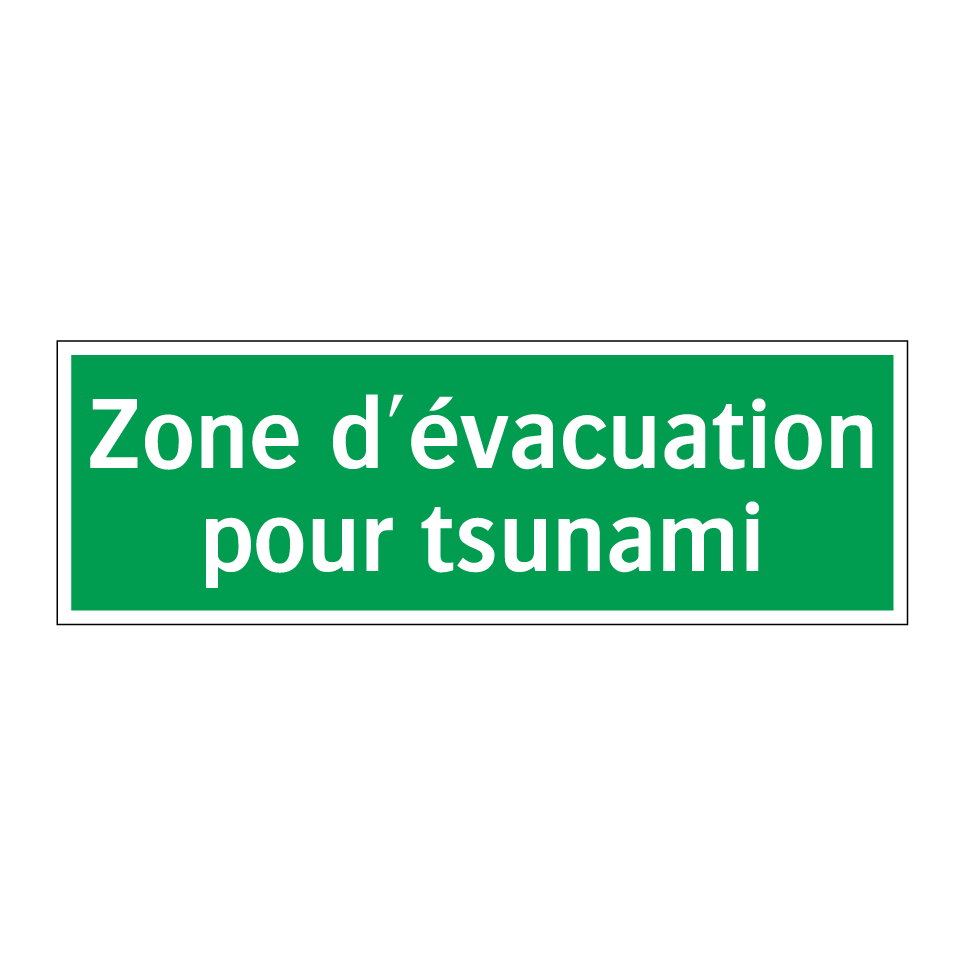 Panneau de secours avec le texte Zone d'évacuation pour tsunami