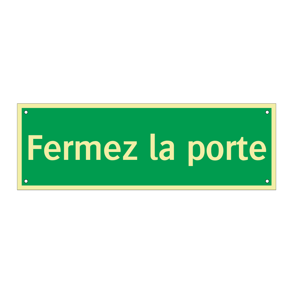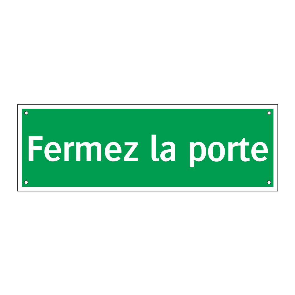 Cette pancarte d'urgence, avec son fond vert et son texte blanc, est idéale pour les environnements où la sécurité est primordiale. Elle est conçue pour rappeler aux individus de fermer la porte, contribuant ainsi à maintenir la sécurité et l'efficacité énergétique des lieux. Parfaite pour les bureaux, les écoles, ou les bâtiments publics, elle peut être placée à l'entrée ou à la sortie des pièces pour garantir que les portes restent fermées. Son message clair et concis en français assure une compréhension immédiate, ce qui est essentiel dans des situations d'urgence.