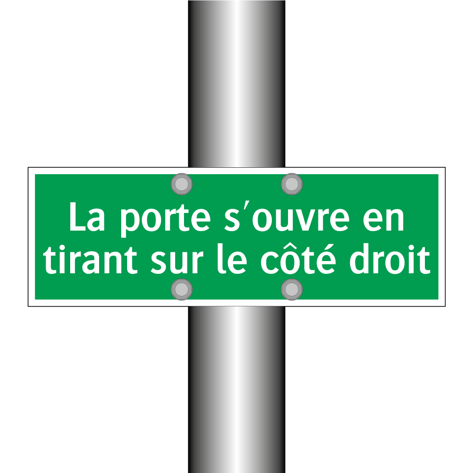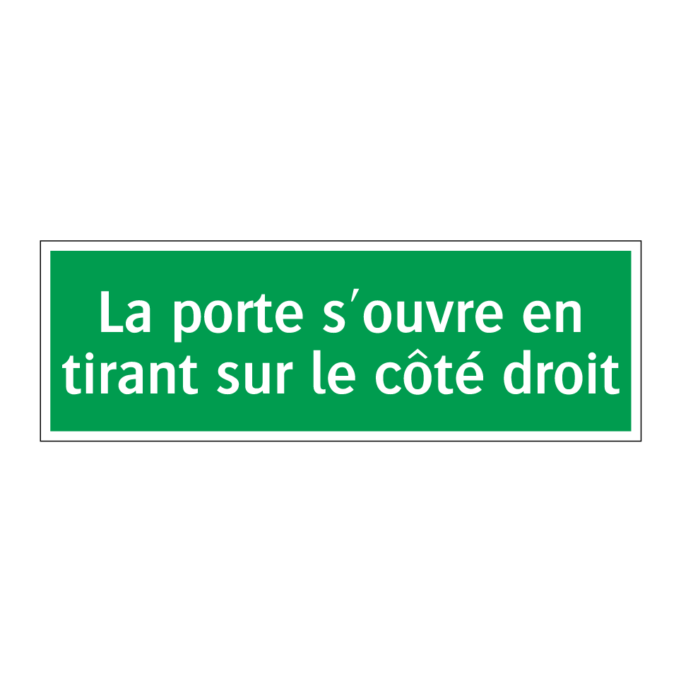 Cette signalisation d'urgence, avec son fond vert et son texte blanc, est idéale pour les environnements où la sécurité est primordiale. Elle est conçue pour être placée à proximité des portes qui s'ouvrent en tirant vers la droite, assurant une évacuation rapide et efficace en cas de besoin. Parfaite pour les bâtiments publics, les bureaux ou les espaces industriels, elle guide clairement les occupants vers la sortie appropriée. Sa visibilité et son message clair en font un choix essentiel pour garantir la sécurité et la conformité aux normes de sécurité.