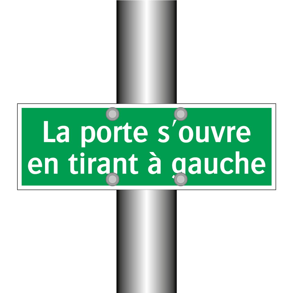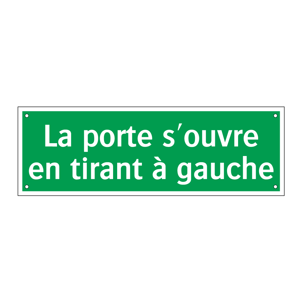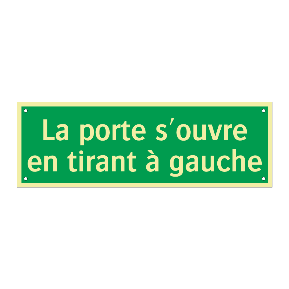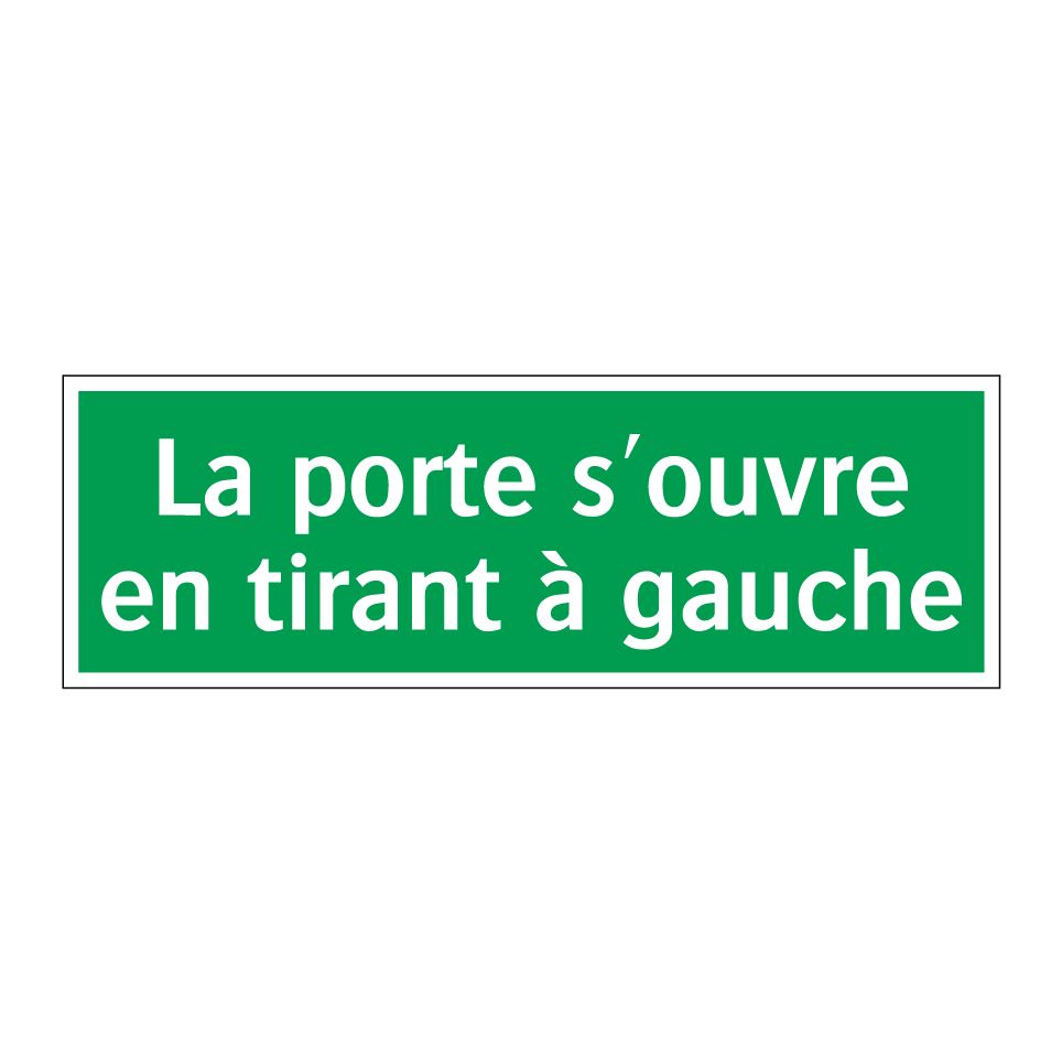 Panneau de secours avec le texte La porte s'ouvre en tirant à gauche