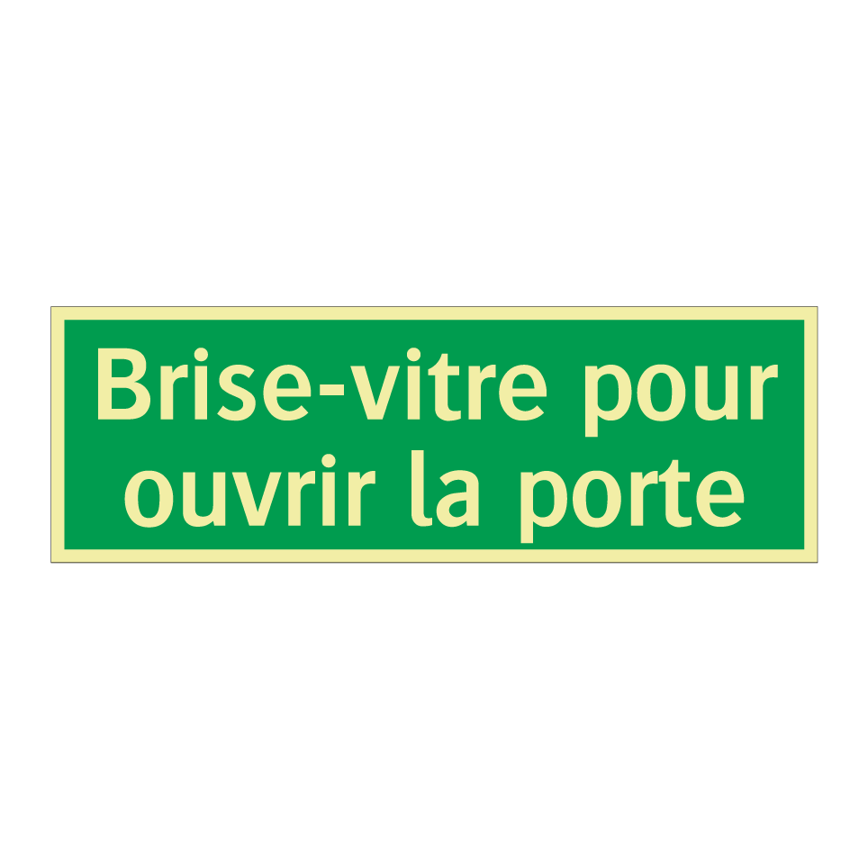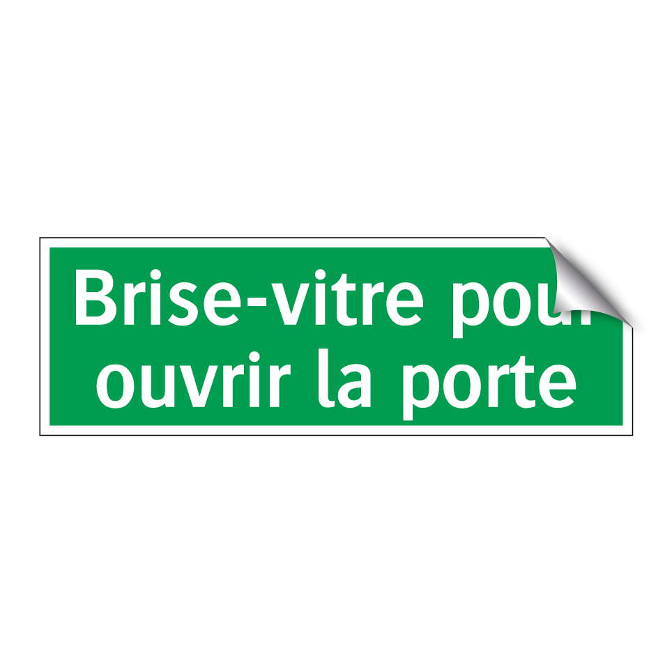 Panneau de secours avec le texte Brise-vitre pour ouvrir la porte