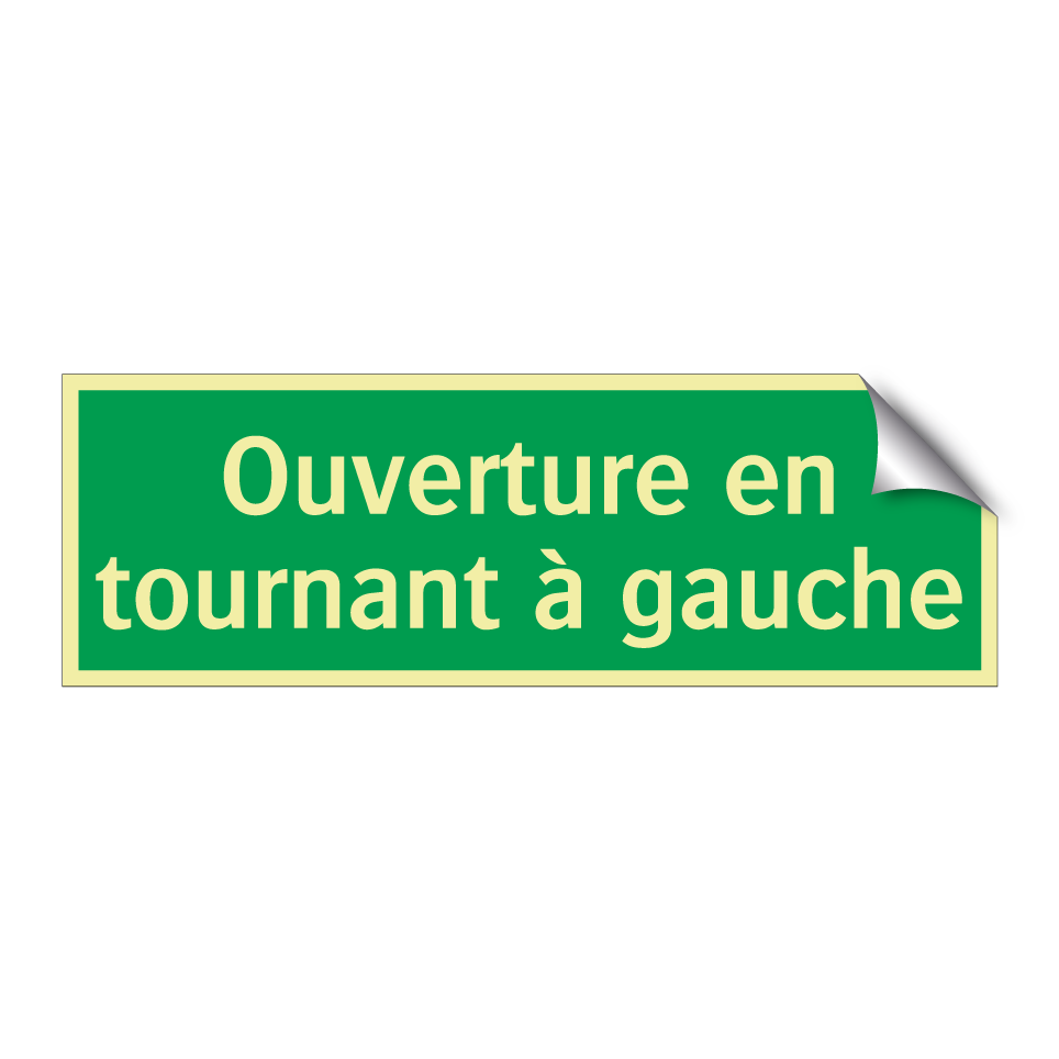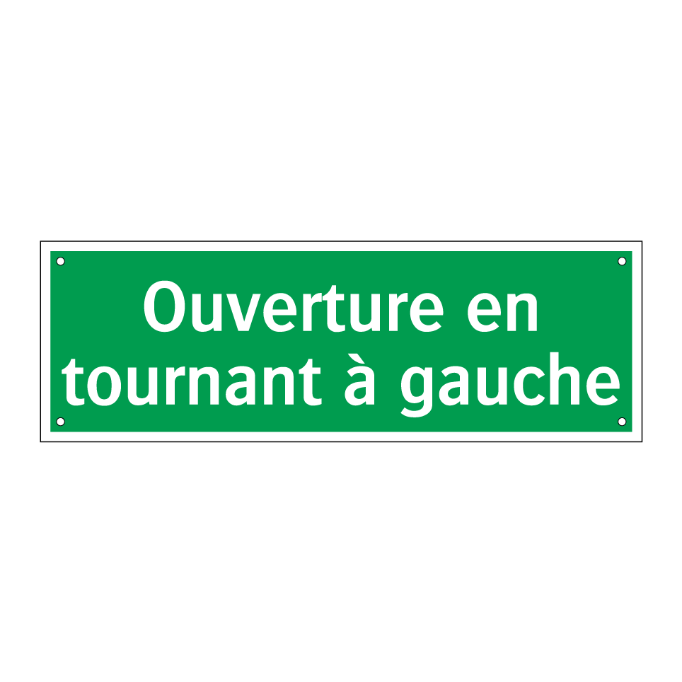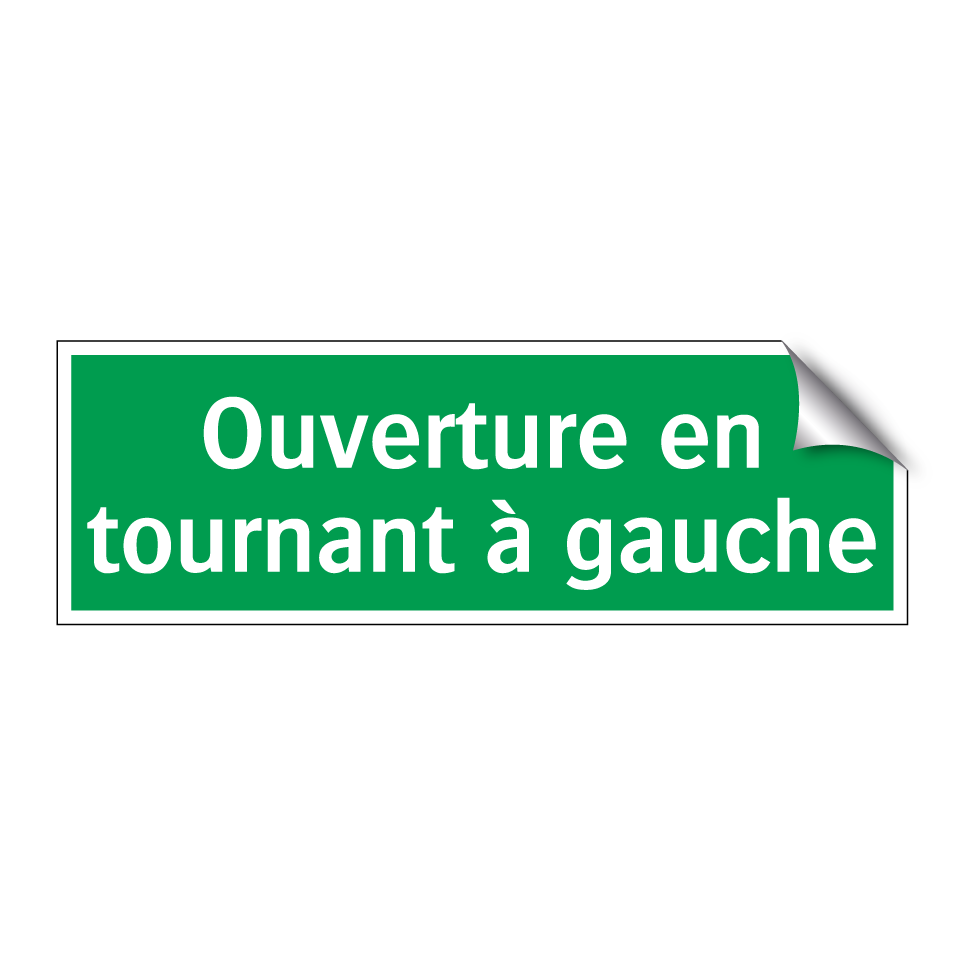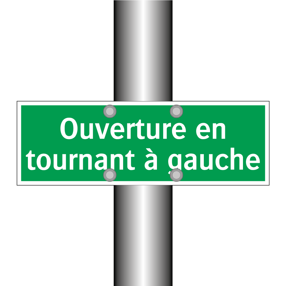 Panneau de secours avec le texte Ouverture en tournant à gauche