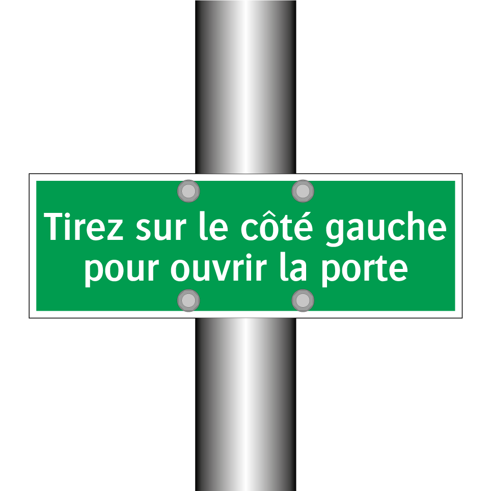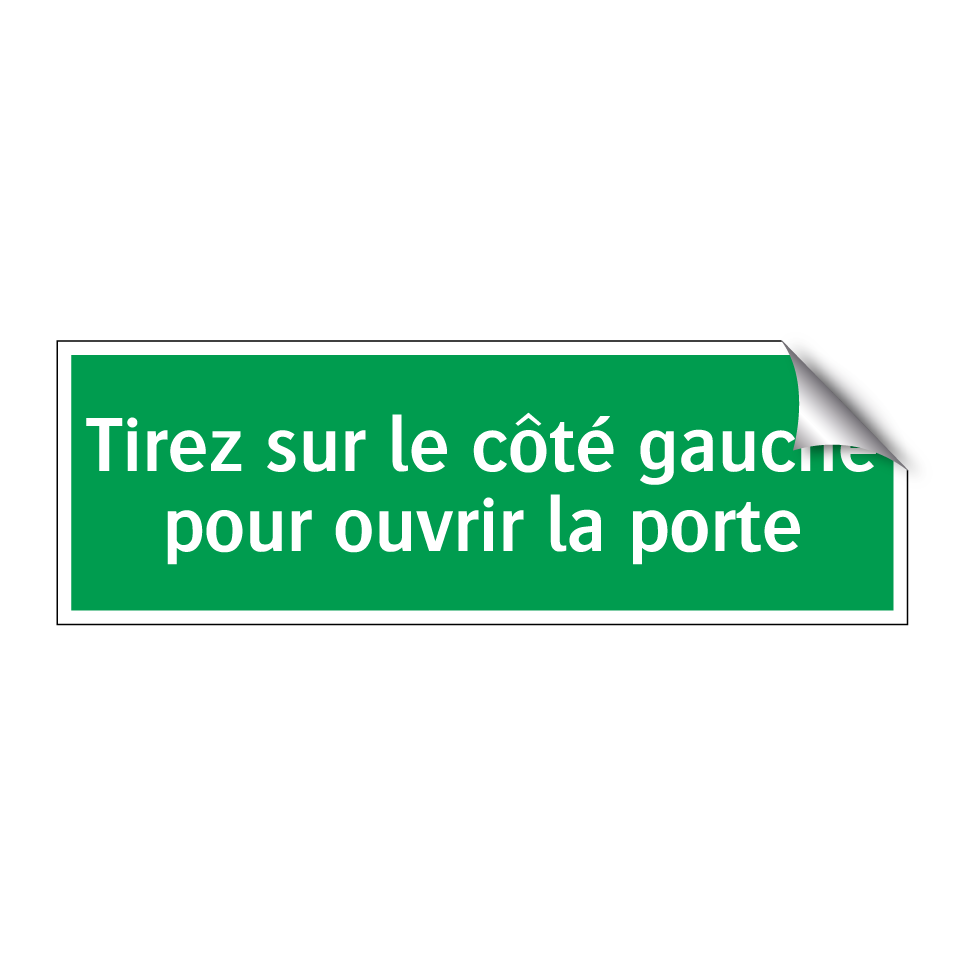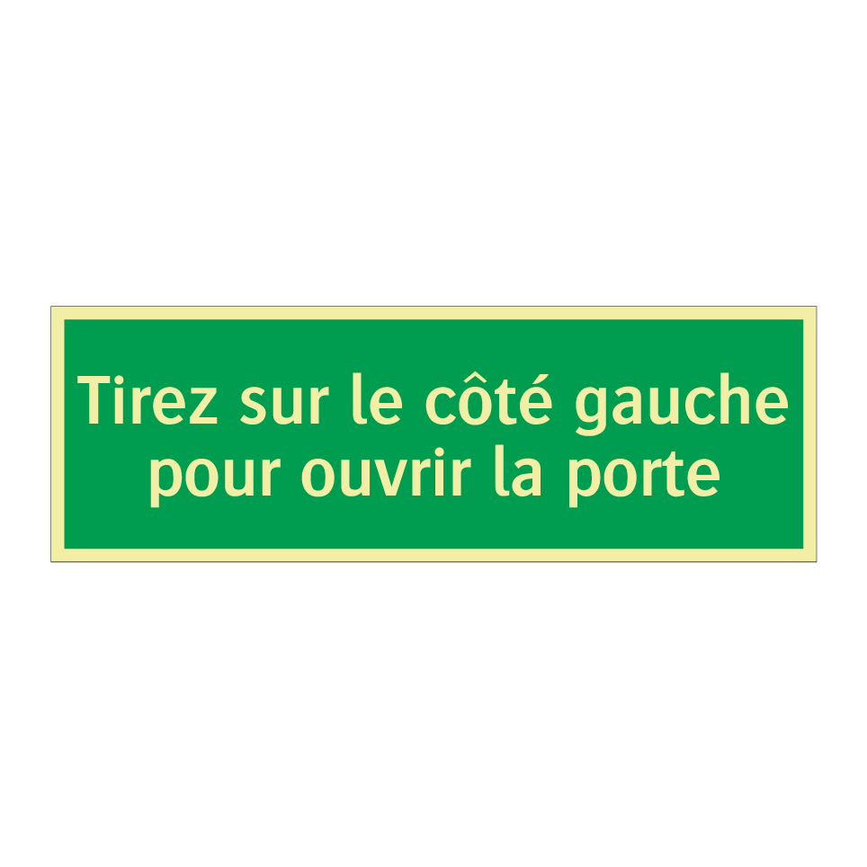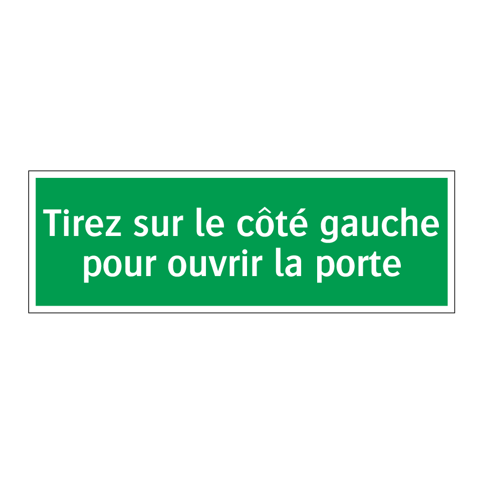 Panneau de secours avec le texte Tirez sur le côté gauche pour ouvrir la porte