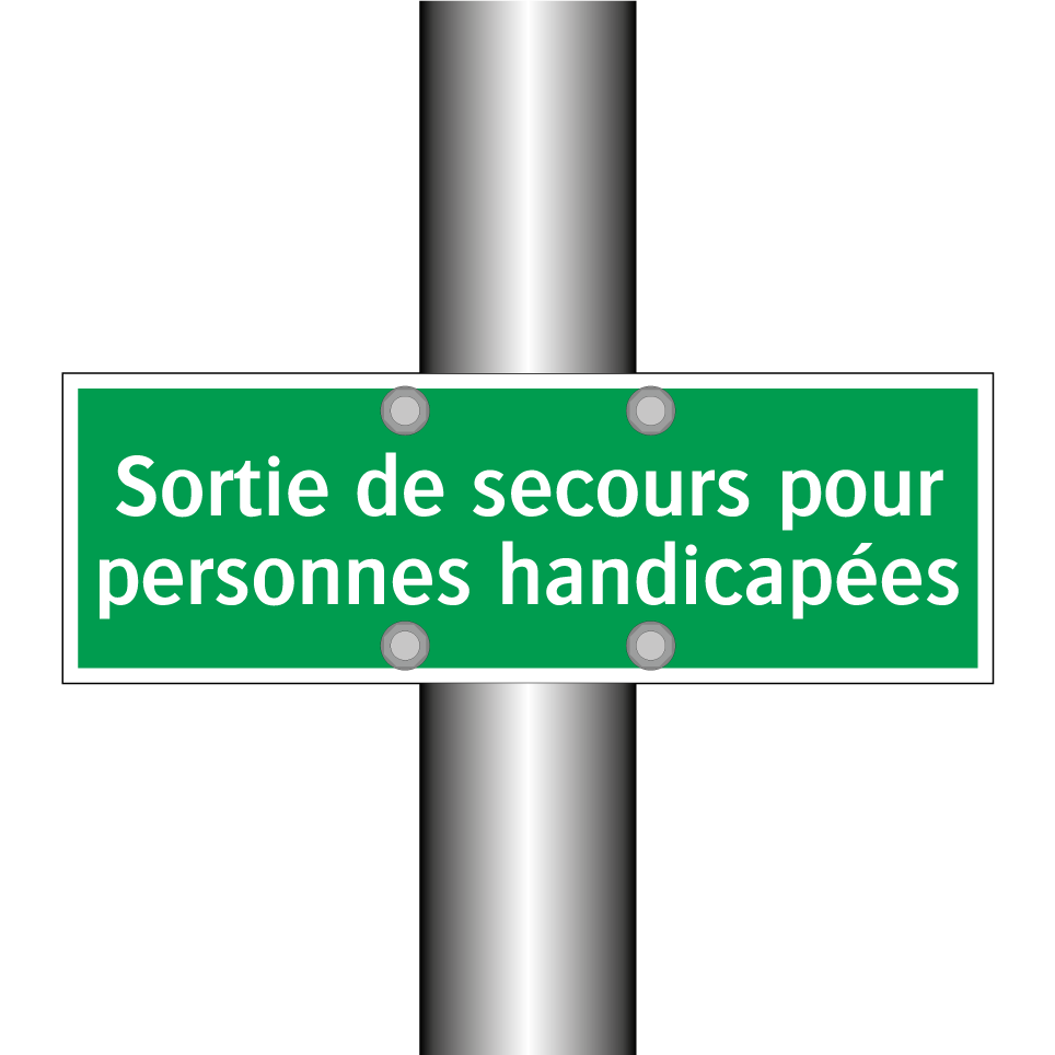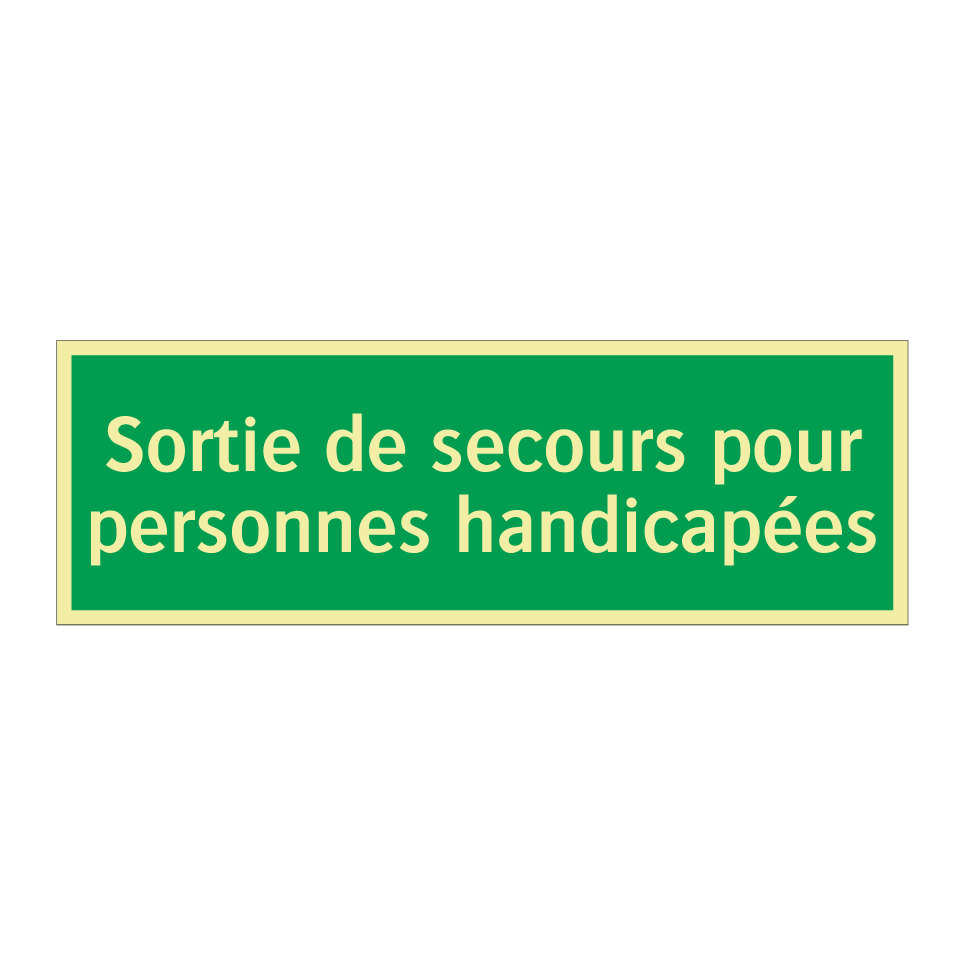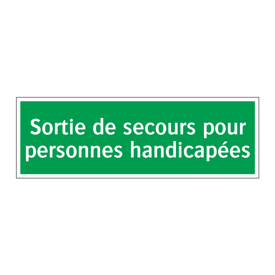 Panneau de secours avec le texte Sortie de secours pour personnes handicapées