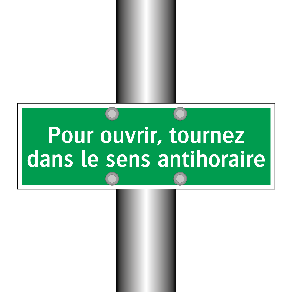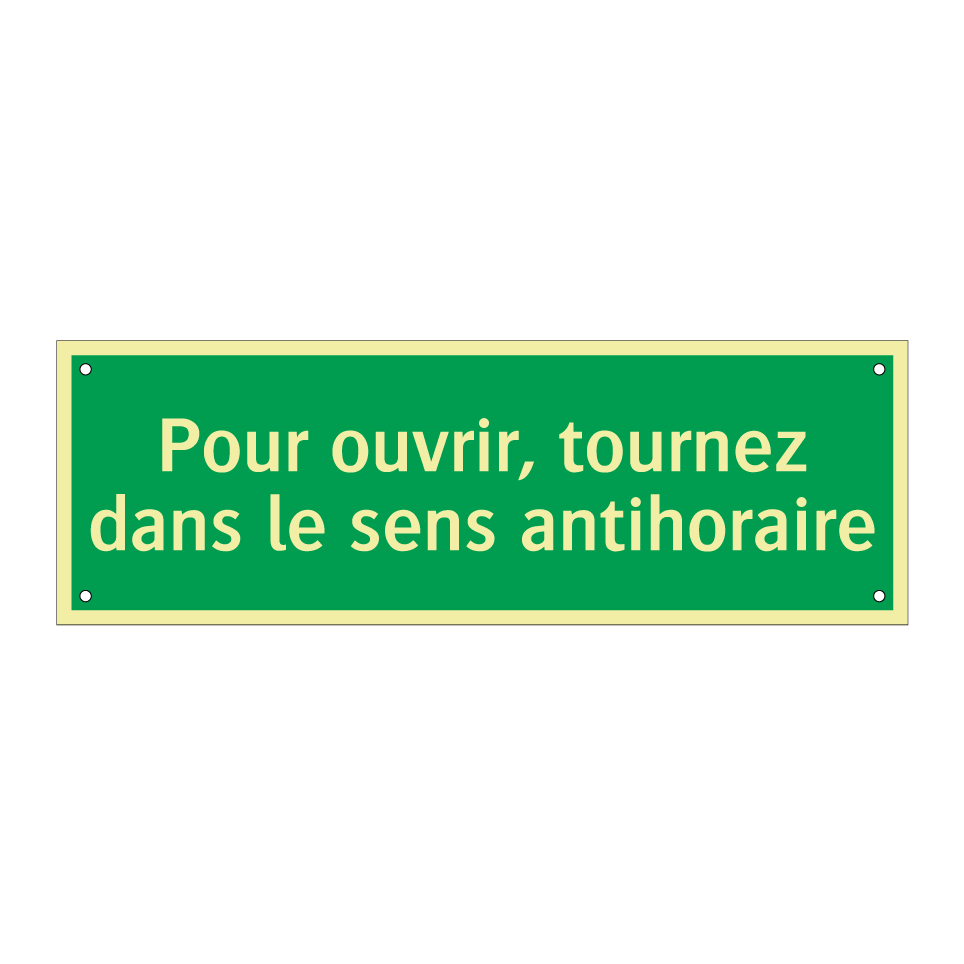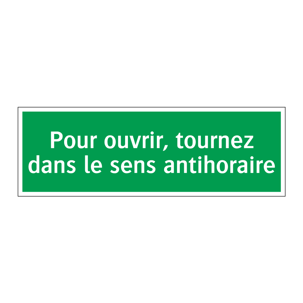 Panneau de secours avec le texte Pour ouvrir, tournez dans le sens antihoraire