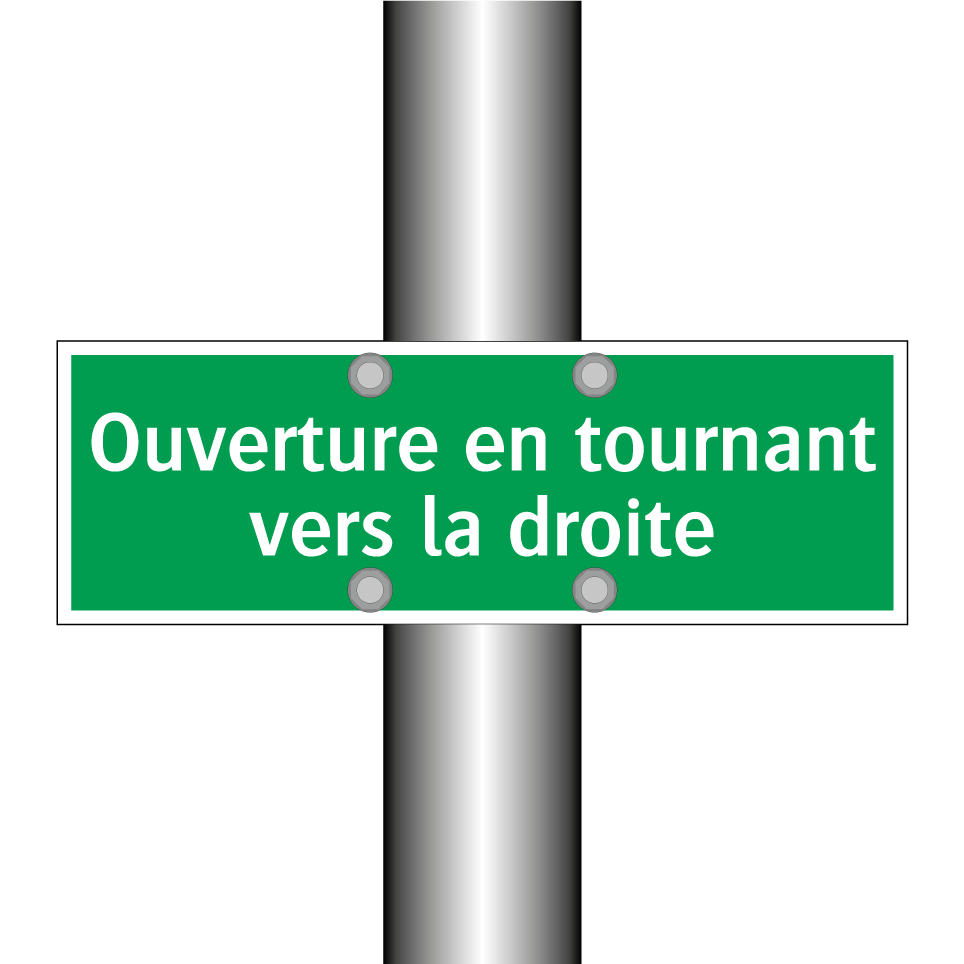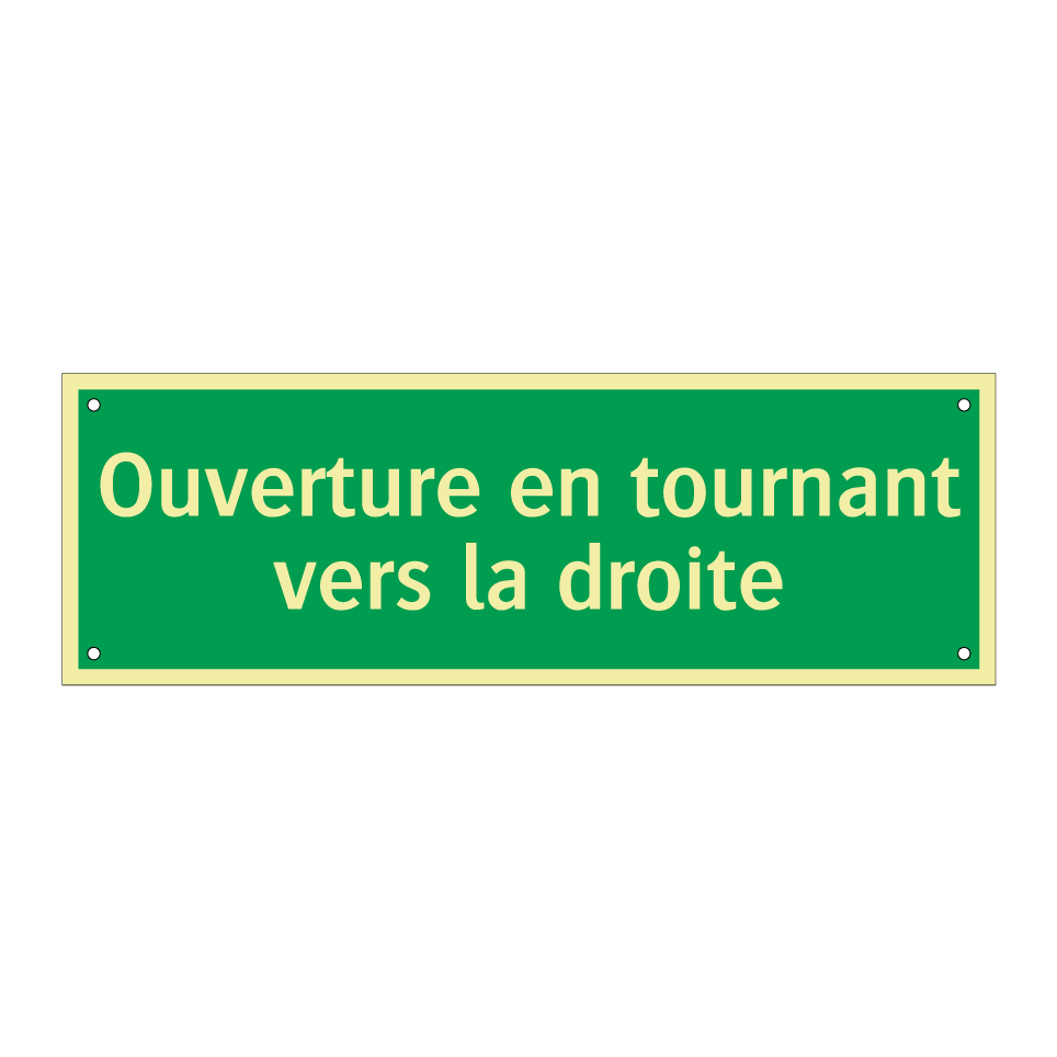 Panneau de secours avec le texte Ouverture en tournant vers la droite