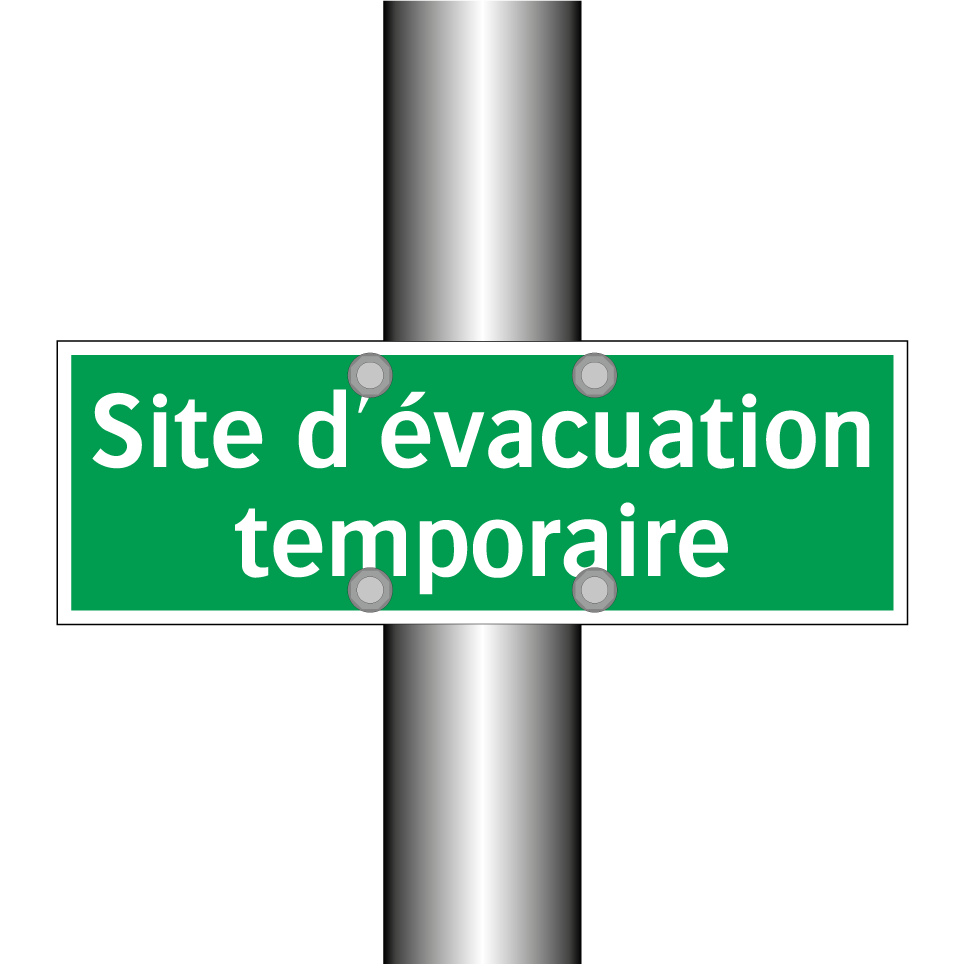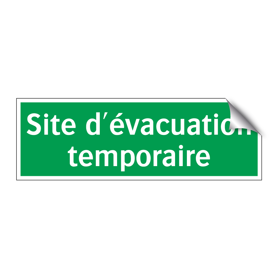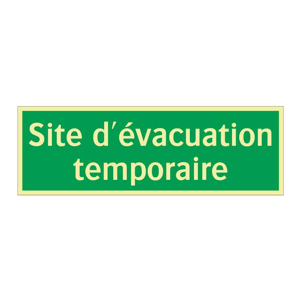 Panneau de secours avec le texte Site d'évacuation temporaire