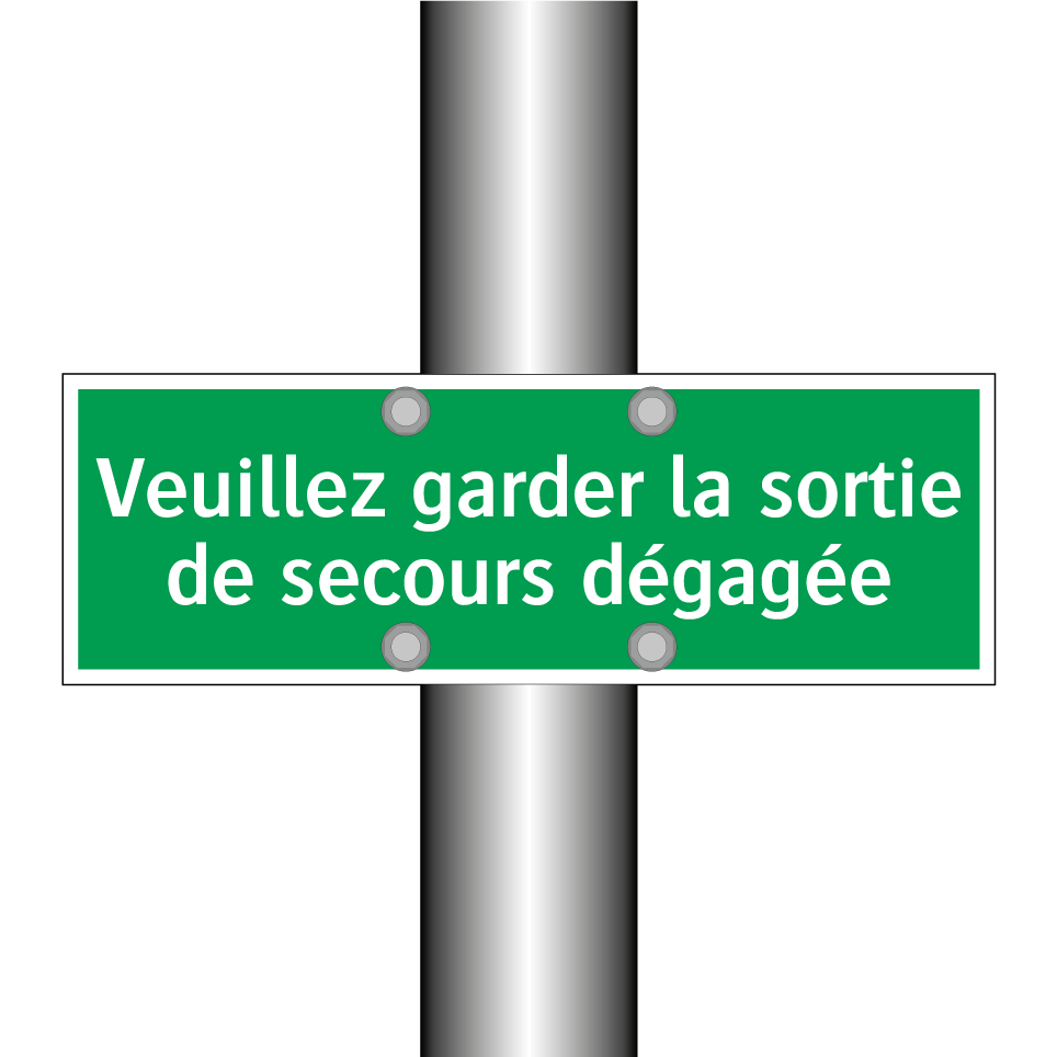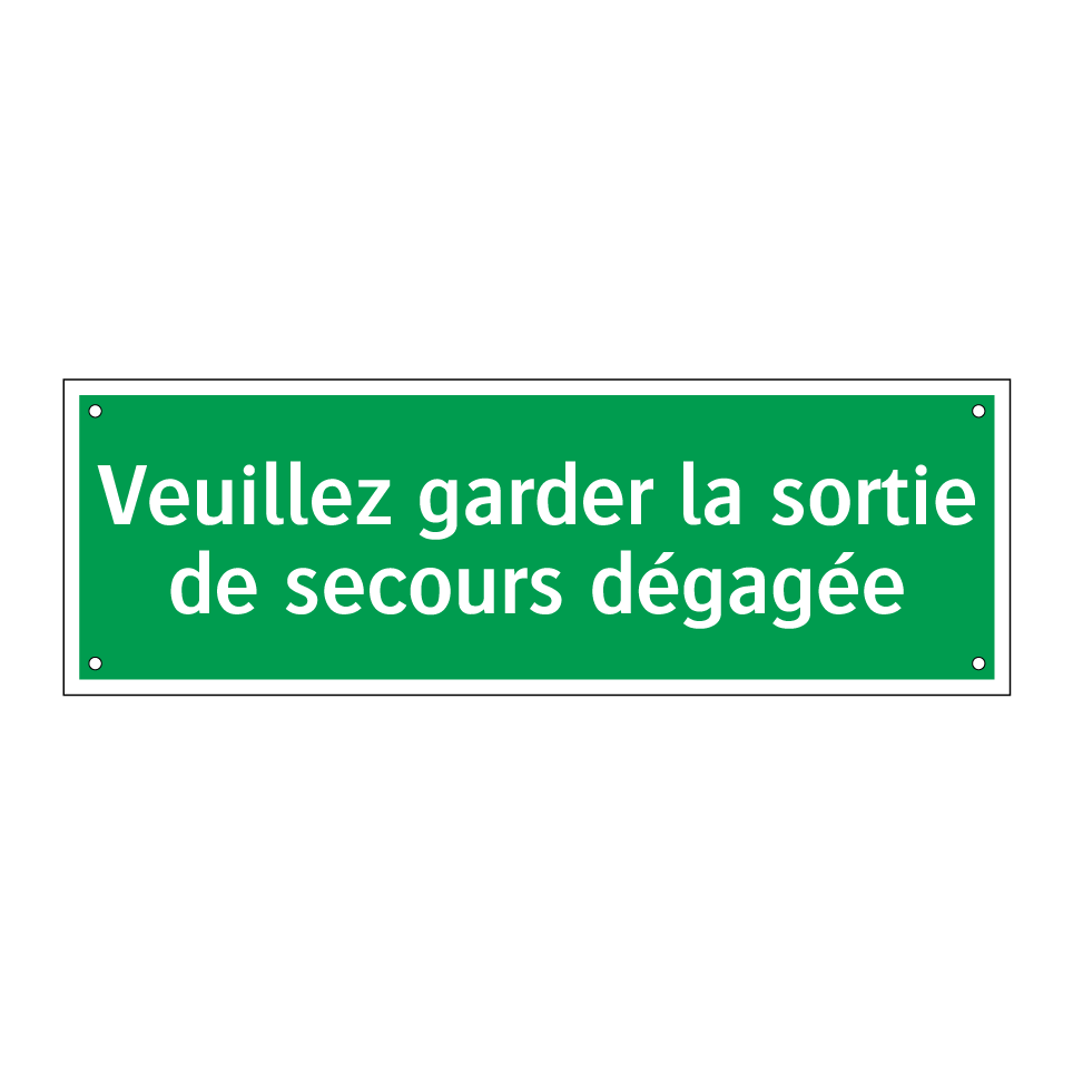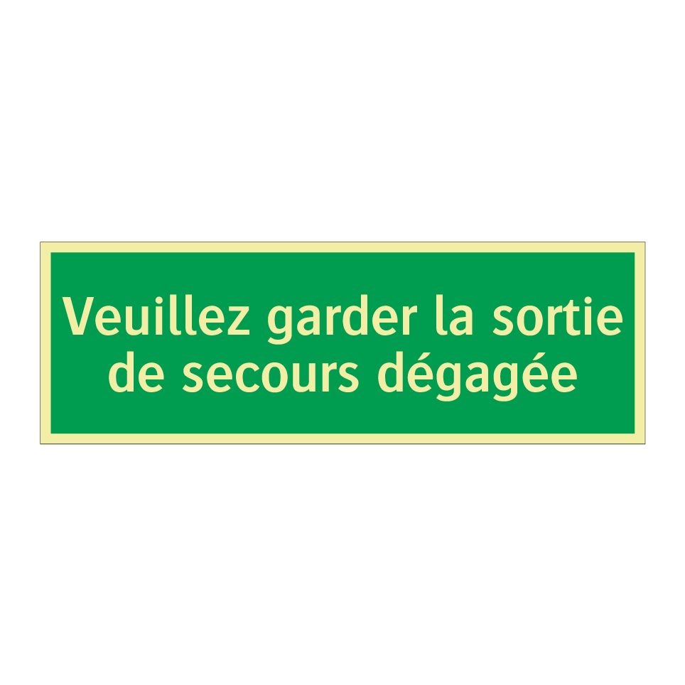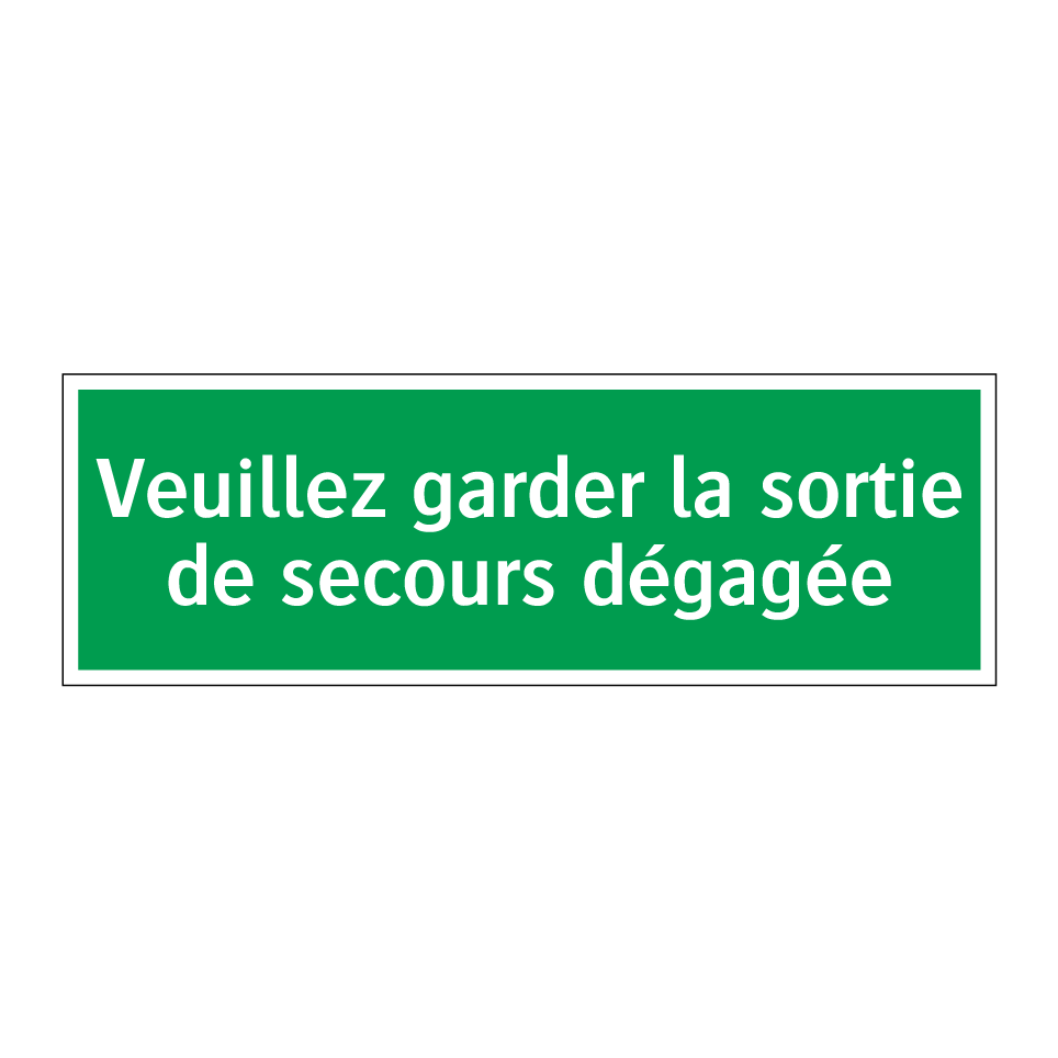 Panneau de secours avec le texte Veuillez garder la sortie de secours dégagée