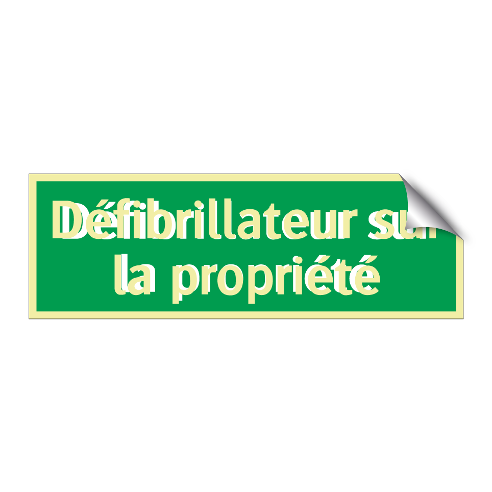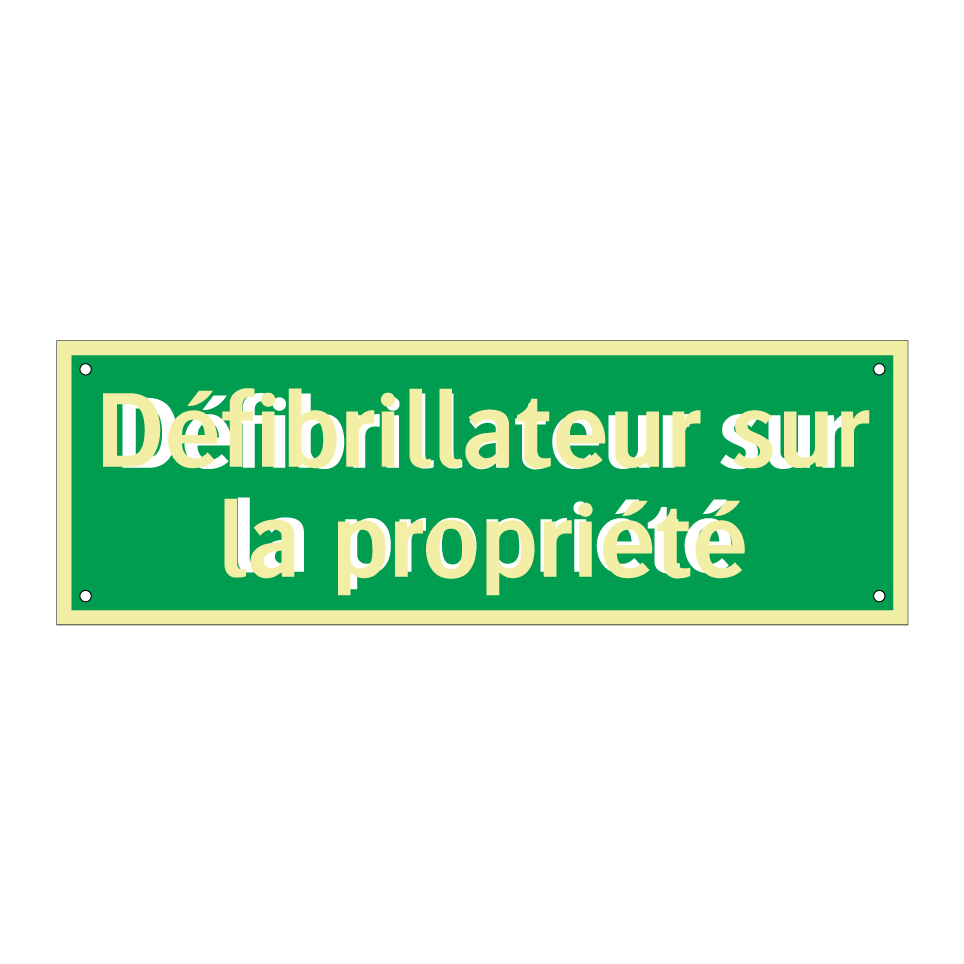Panneau de secours avec le texte Défibrillateur sur la propriété