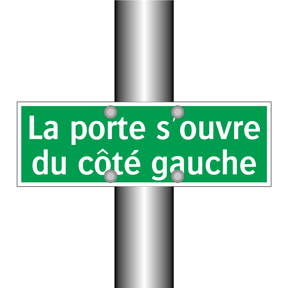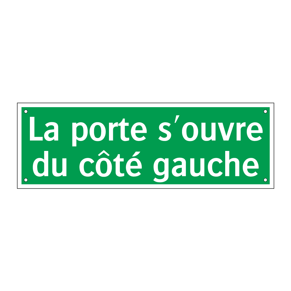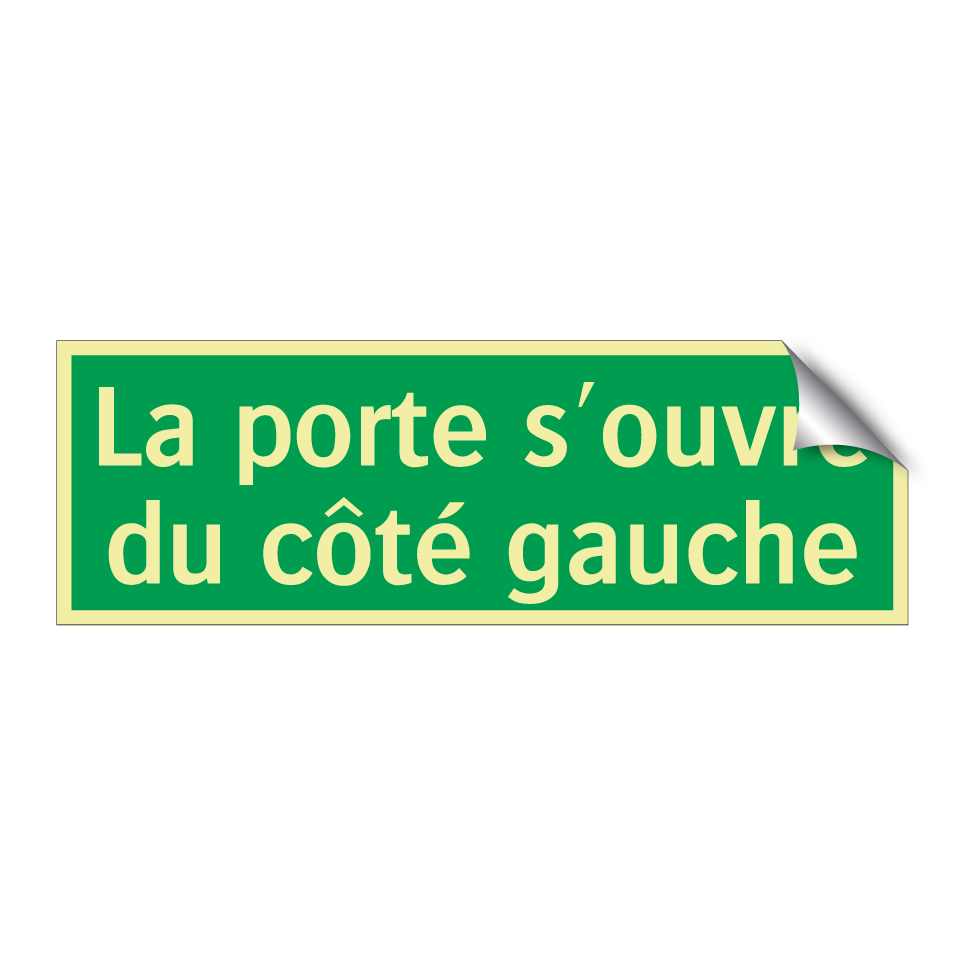 Panneau de secours avec le texte La porte s'ouvre du côté gauche