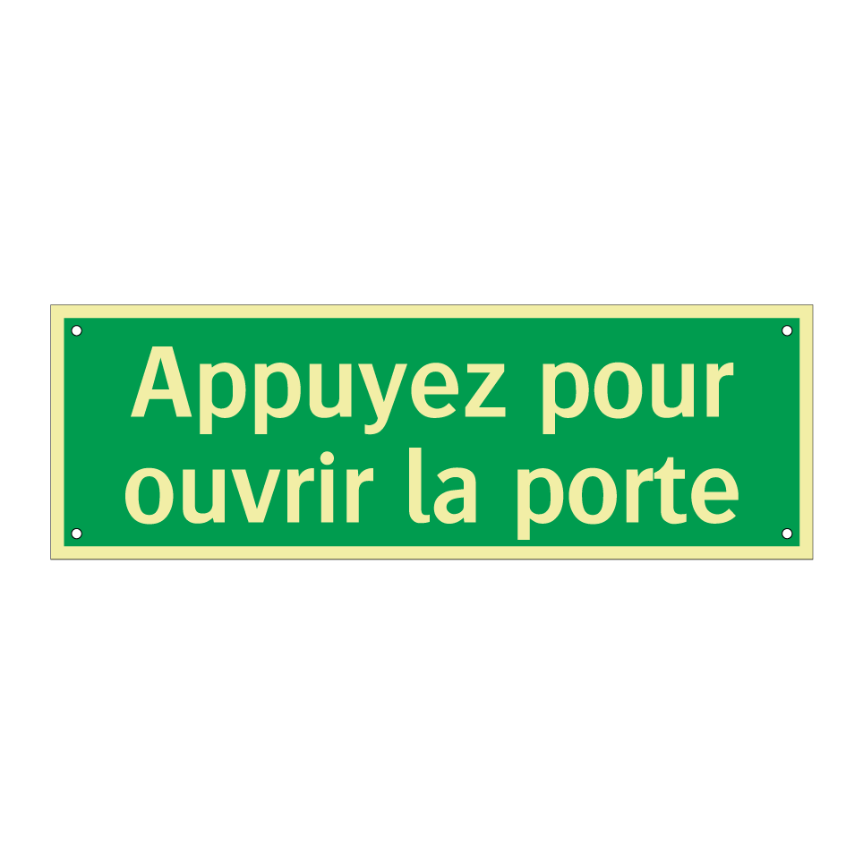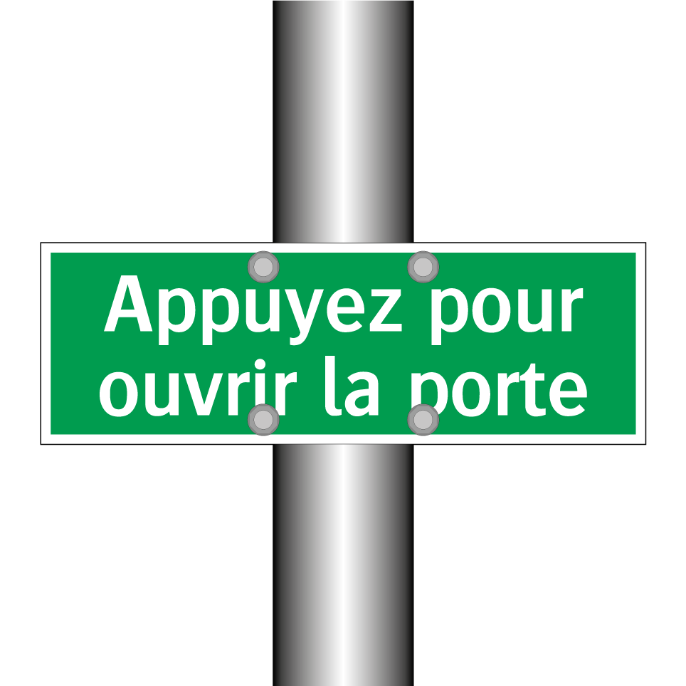 Panneau de secours avec le texte Appuyez pour ouvrir la porte