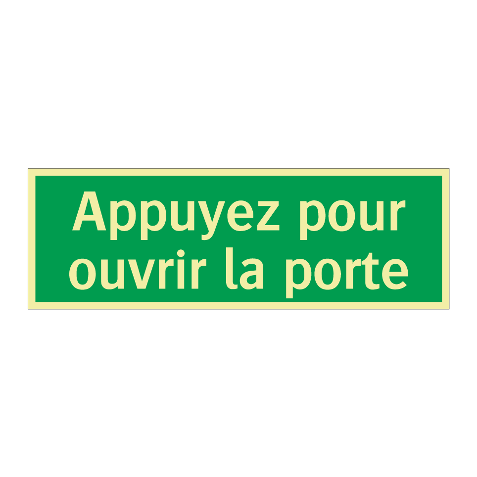Cette enseigne d'urgence, avec son fond vert et son texte blanc, est idéale pour les lieux nécessitant une signalisation claire pour l'ouverture des portes. Elle est particulièrement utile dans les bâtiments publics, les hôpitaux, et les établissements scolaires où la sécurité est primordiale. Placée près des portes automatiques ou des sorties de secours, elle guide efficacement les utilisateurs en cas de besoin. Sa conception en matériaux durables assure une visibilité optimale et une résistance aux conditions variées, garantissant ainsi une utilisation à long terme.