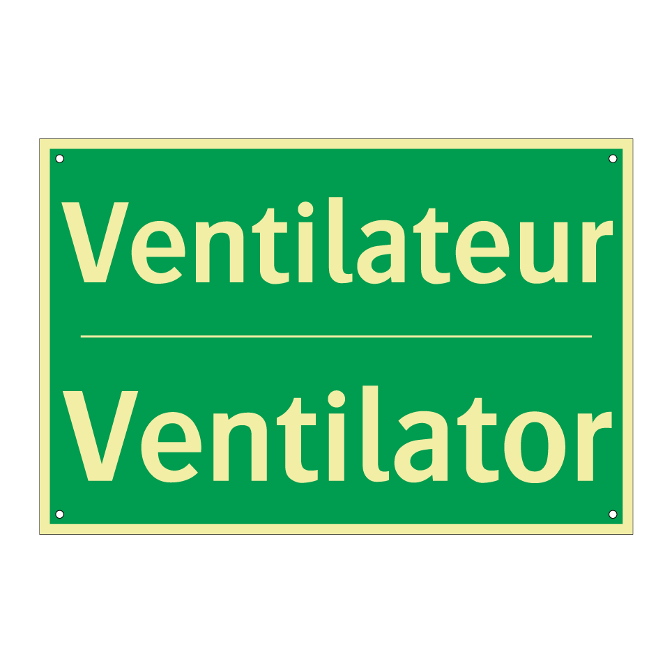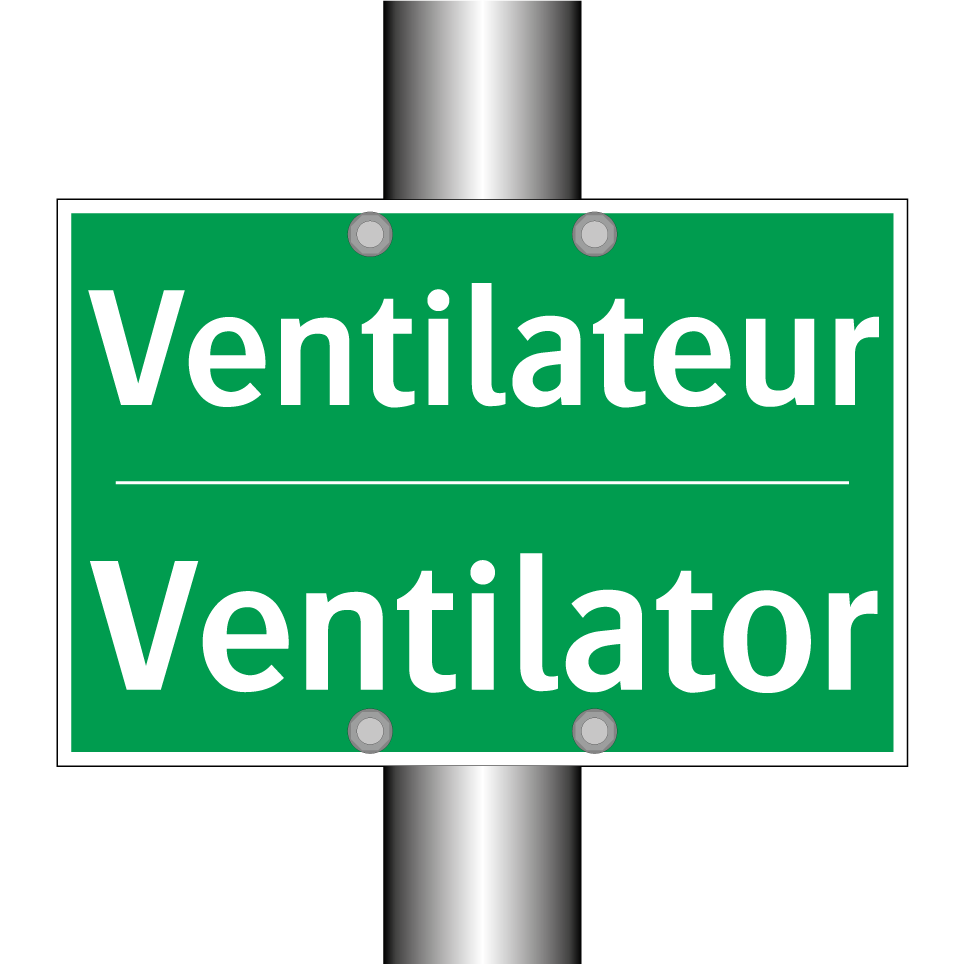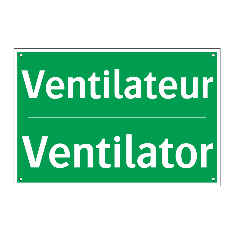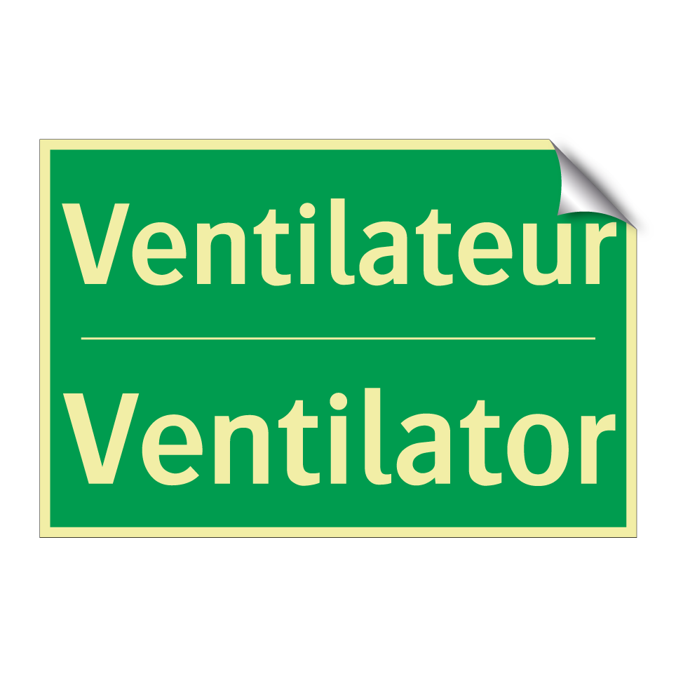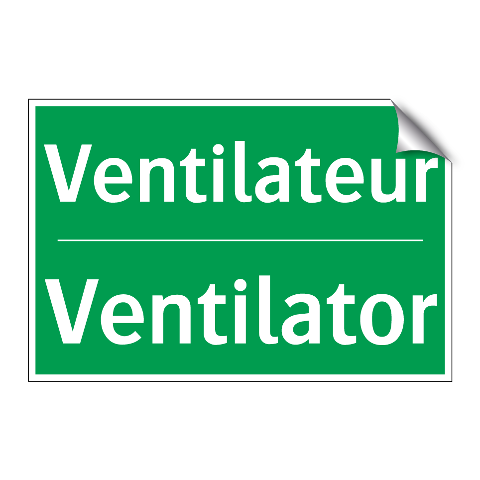 Panneau de secours bilingue avec texte en français : "Ventilateur", et en anglais : "Ventilator"