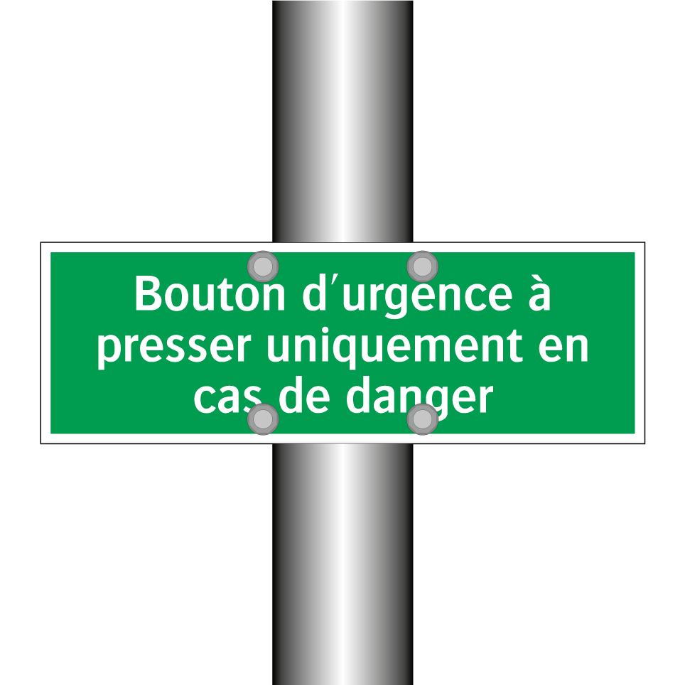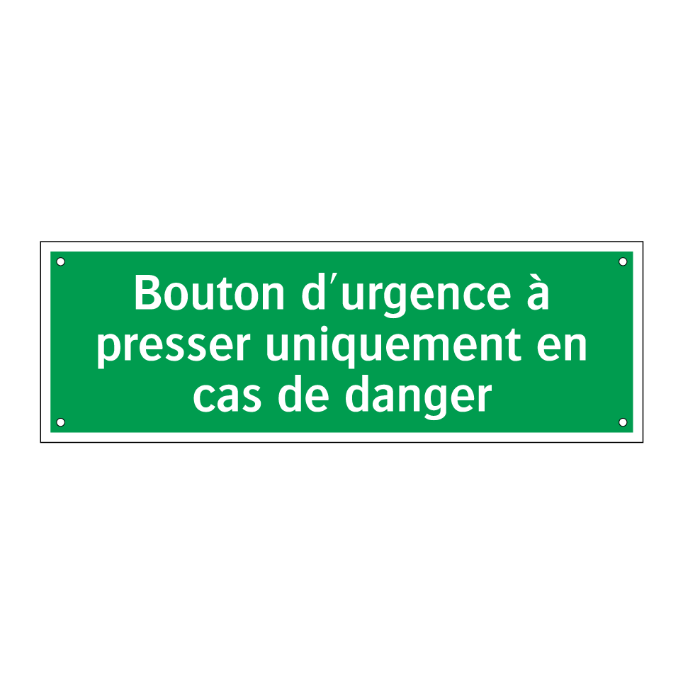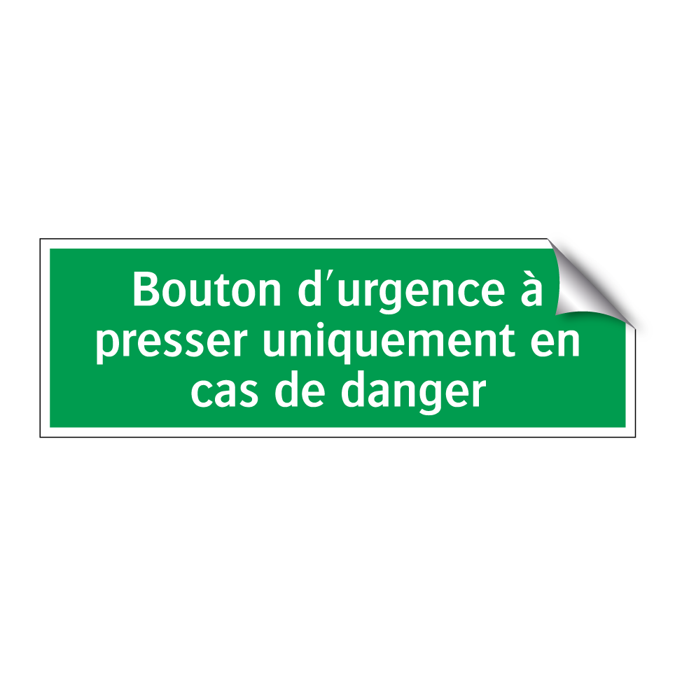 Panneau de secours avec le texte Bouton d'urgence à presser uniquement en cas de danger