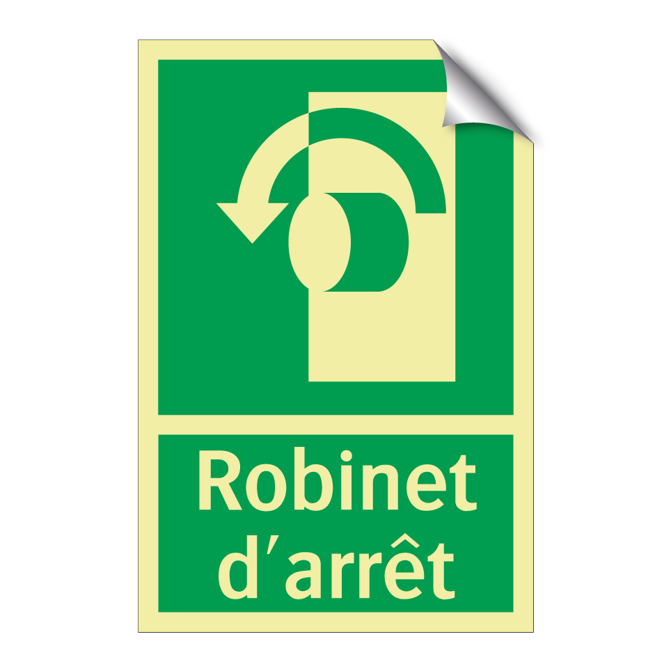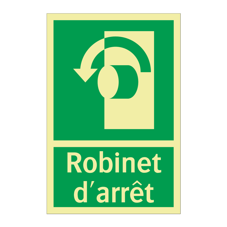 Panneau de secours avec le texte Robinet d'arrêt et une symbolique claire