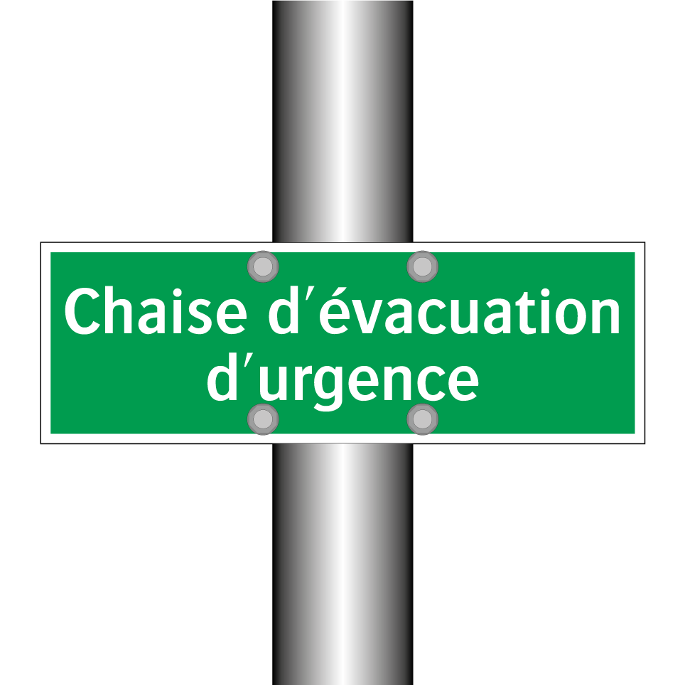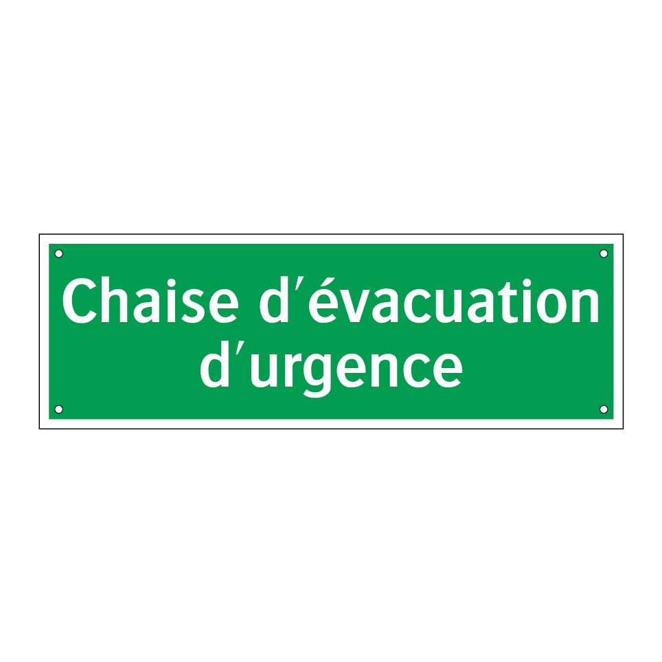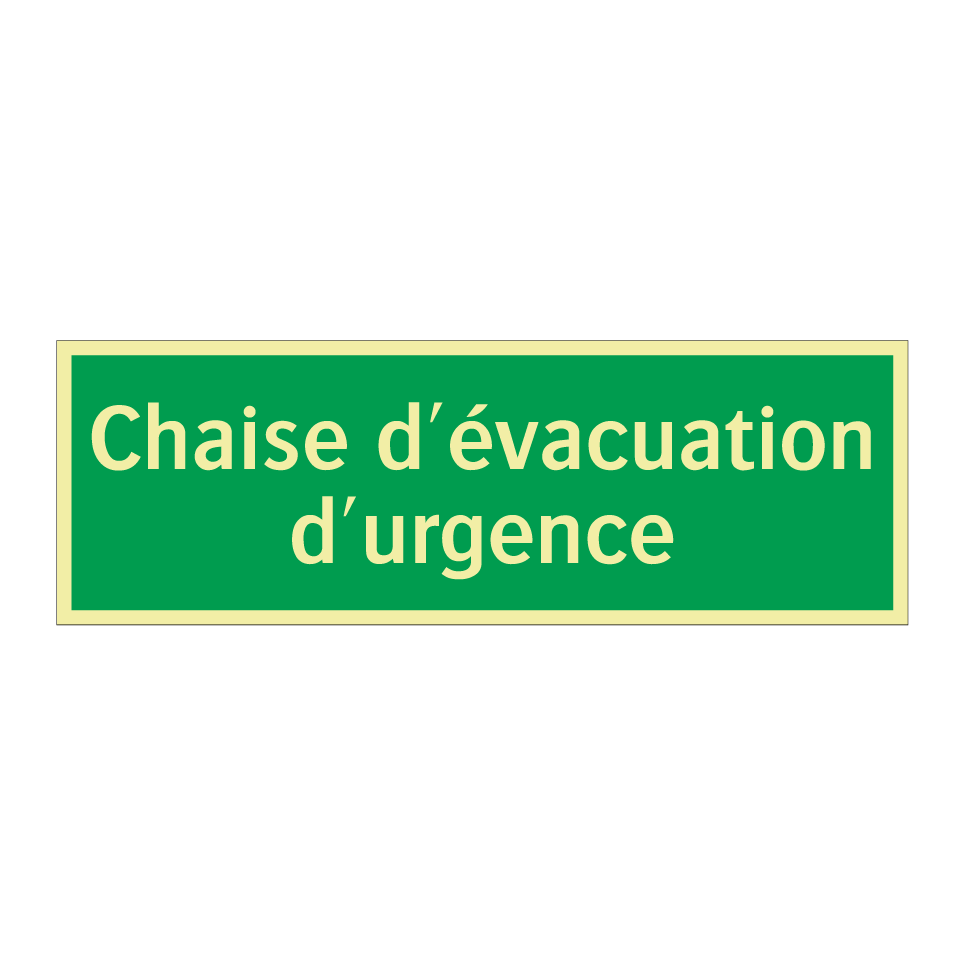 Panneau de secours avec le texte Chaise d'évacuation d'urgence