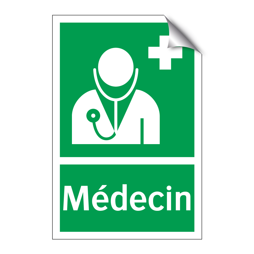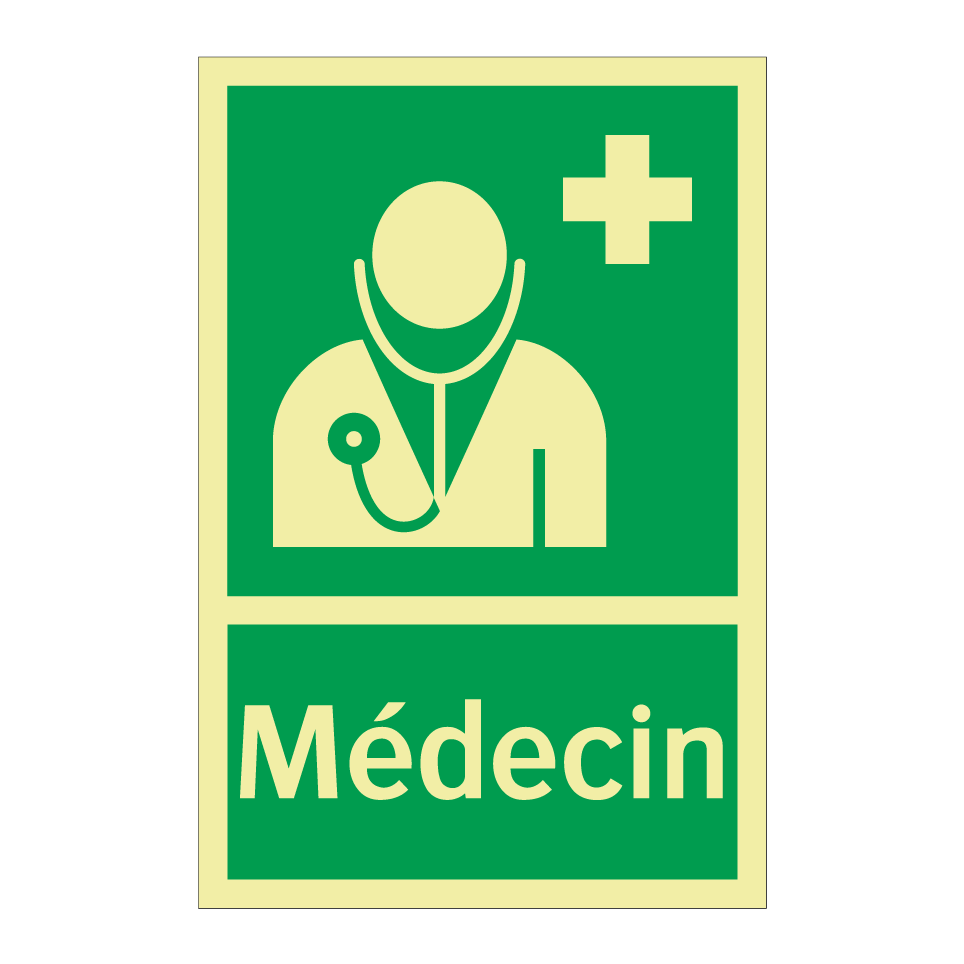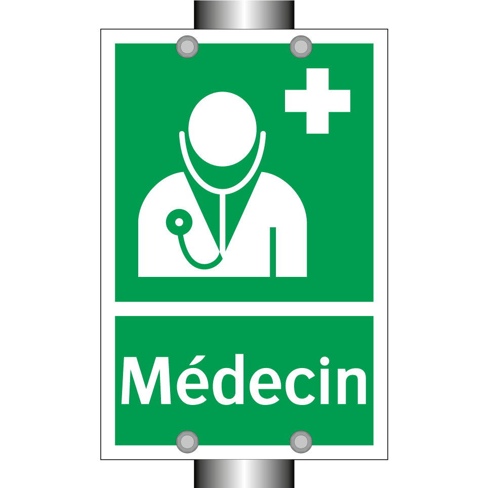 Panneau de secours avec le texte Médecin et une symbolique claire