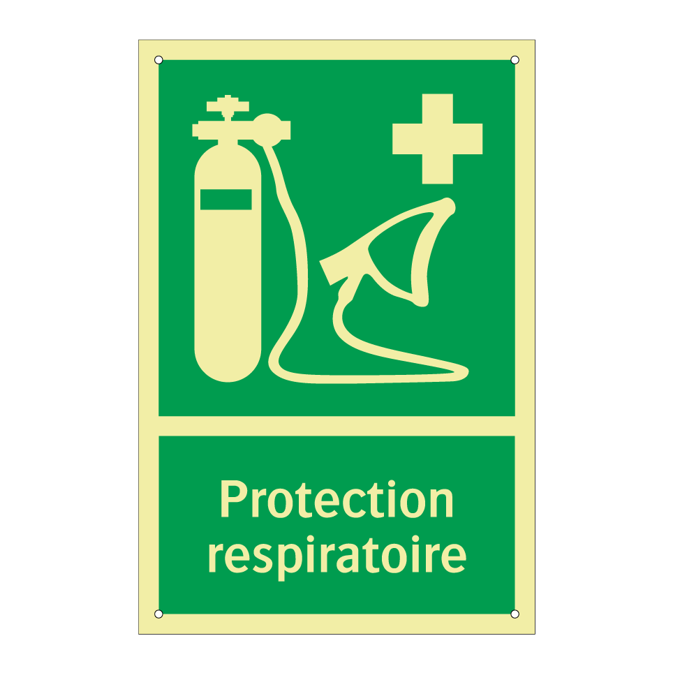 Panneau de secours avec le texte Protection respiratoire et une symbolique claire