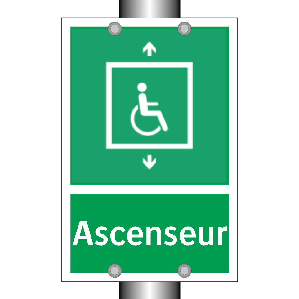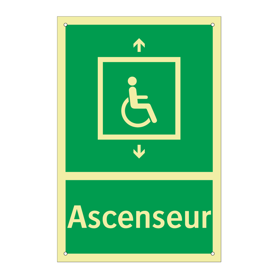 Panneau de secours avec le texte Ascenseur et une symbolique claire