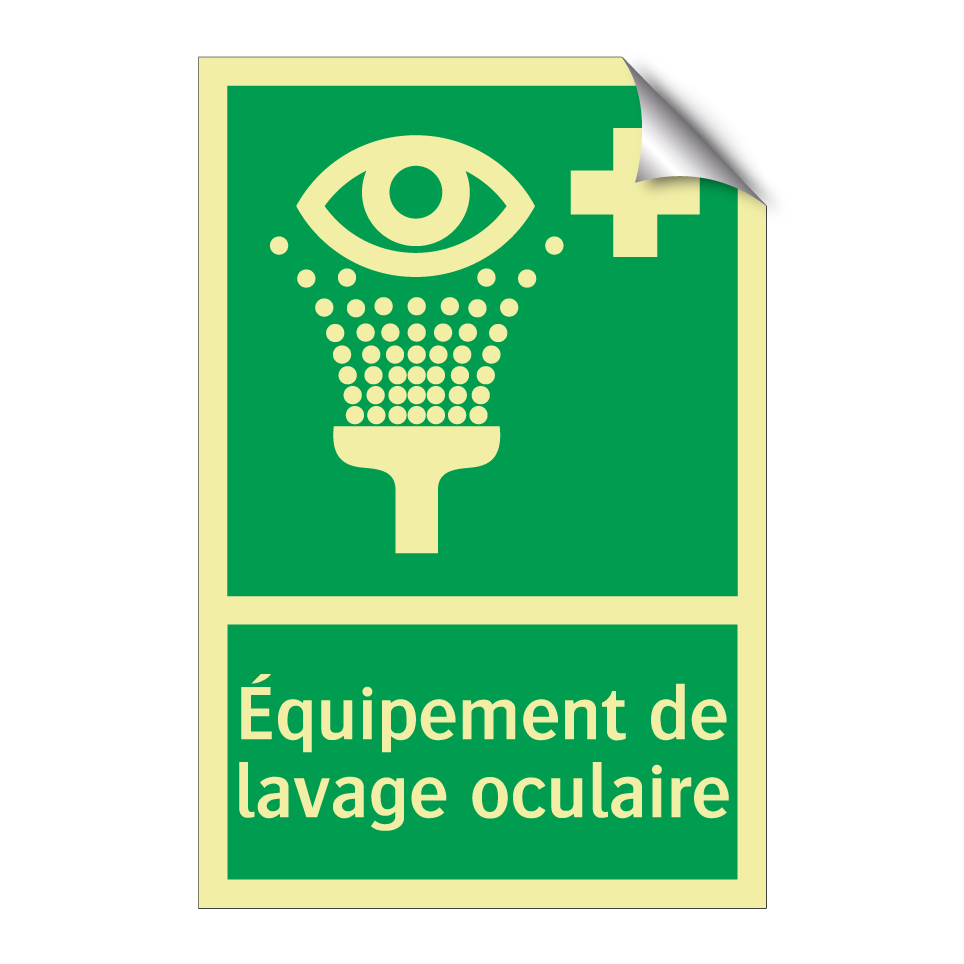 Panneau de secours avec le texte Équipement de lavage oculaire et une symbolique claire