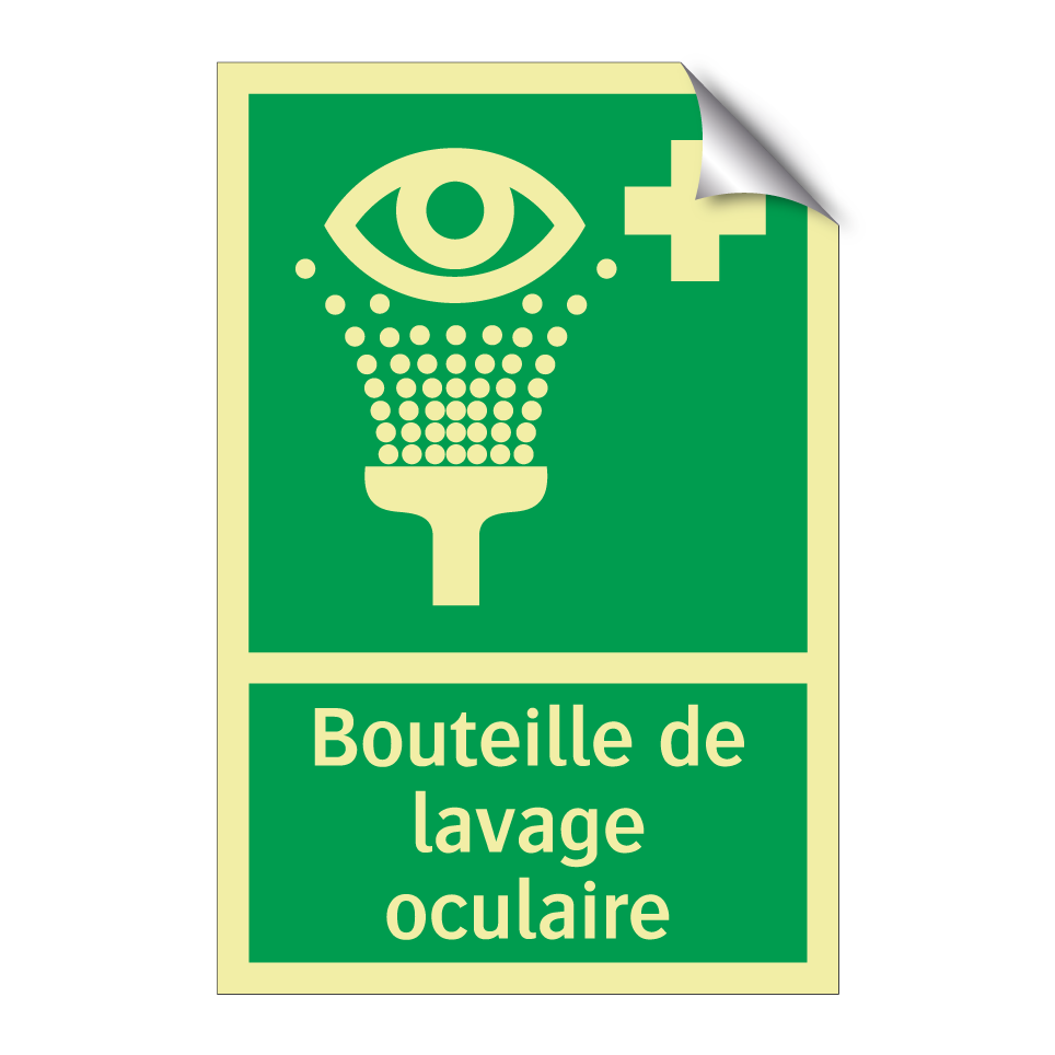 Panneau de secours avec le texte Bouteille de lavage oculaire et une symbolique claire