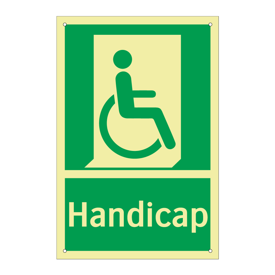 Panneau de secours avec le texte Handicap et une symbolique claire