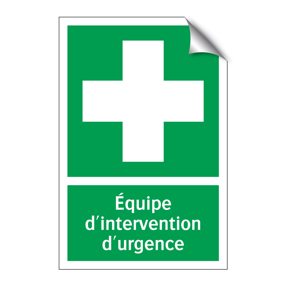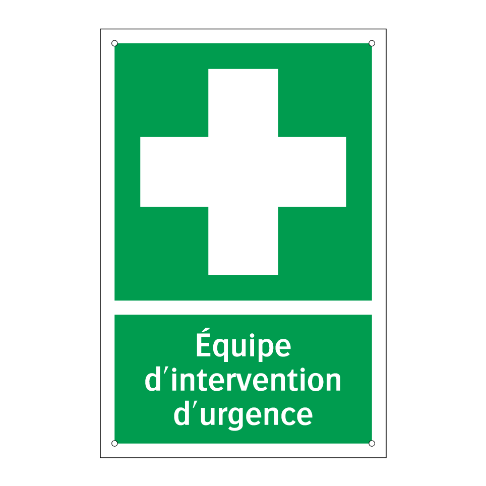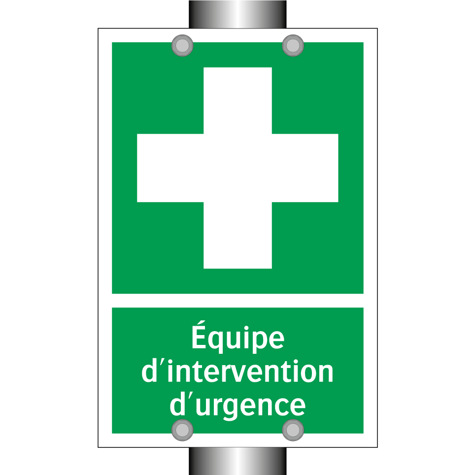 Panneau de secours avec le texte Équipe d'intervention d'urgence et une symbolique claire
