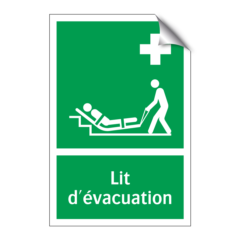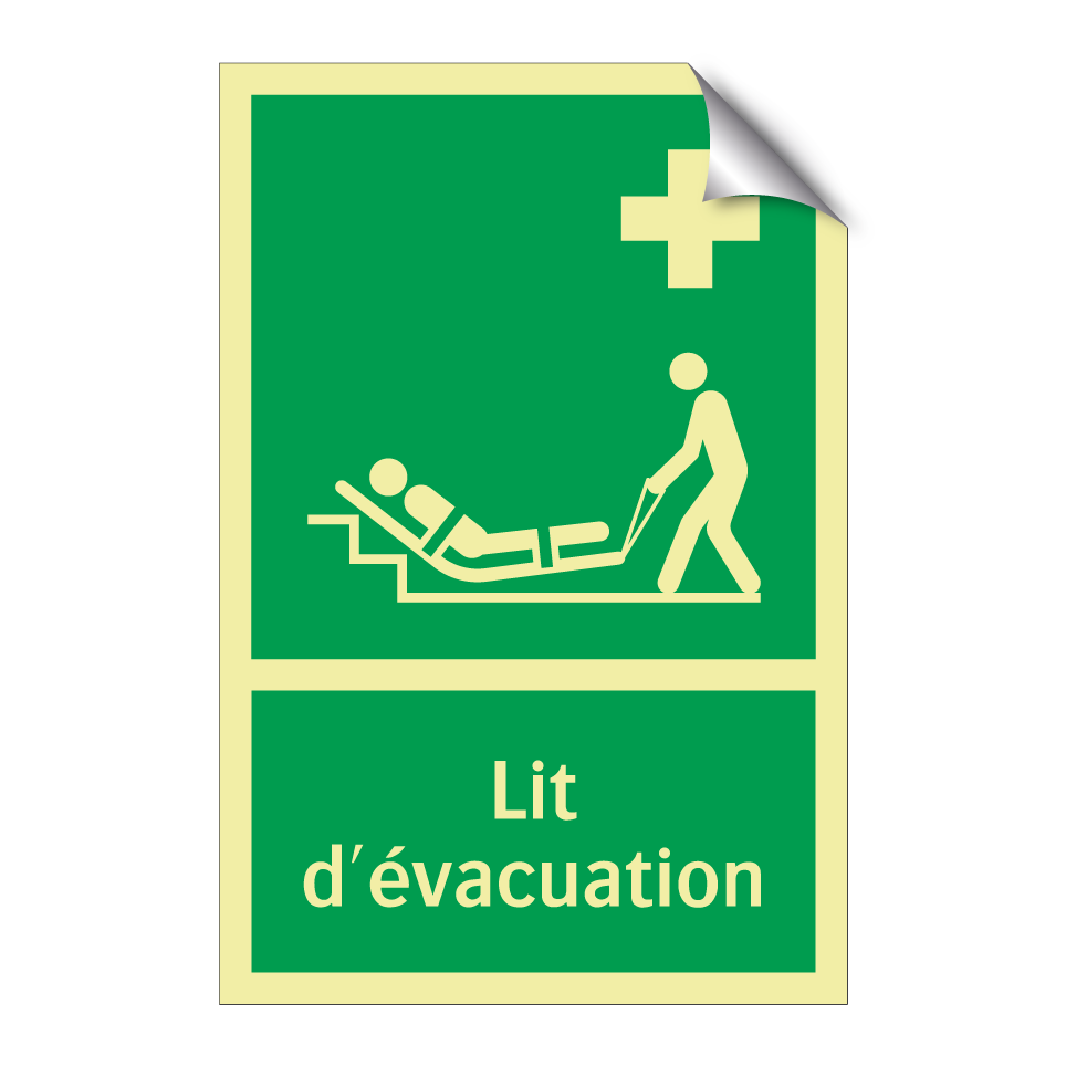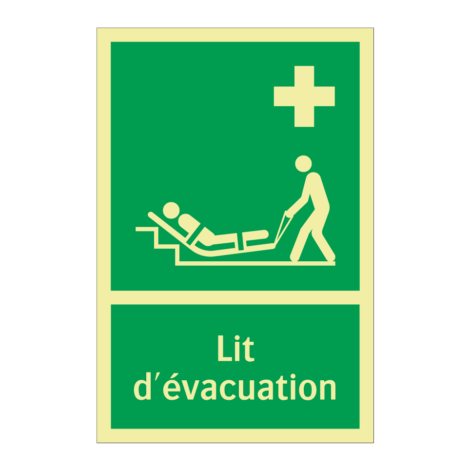 Panneau de secours avec le texte Lit d'évacuation et une symbolique claire