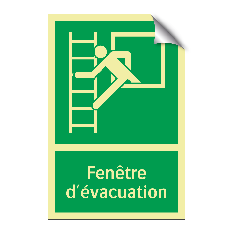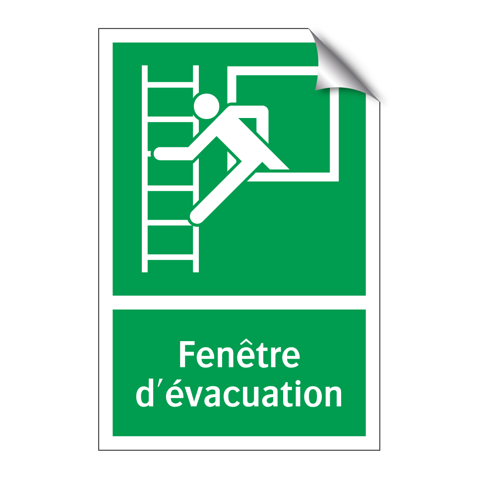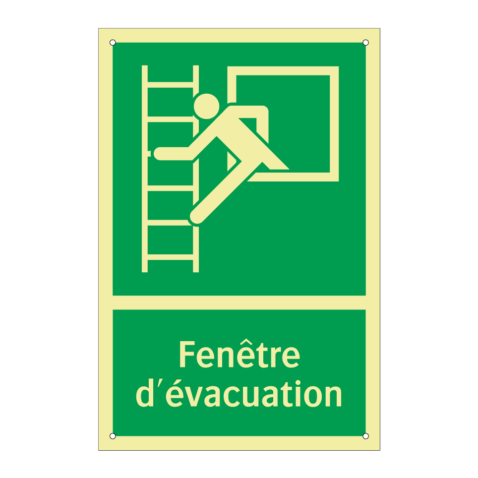 Panneau de secours avec le texte Fenêtre d'évacuation et une symbolique claire