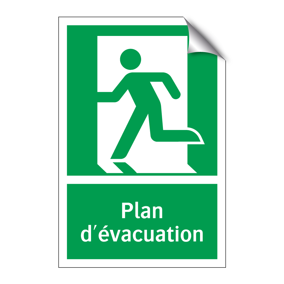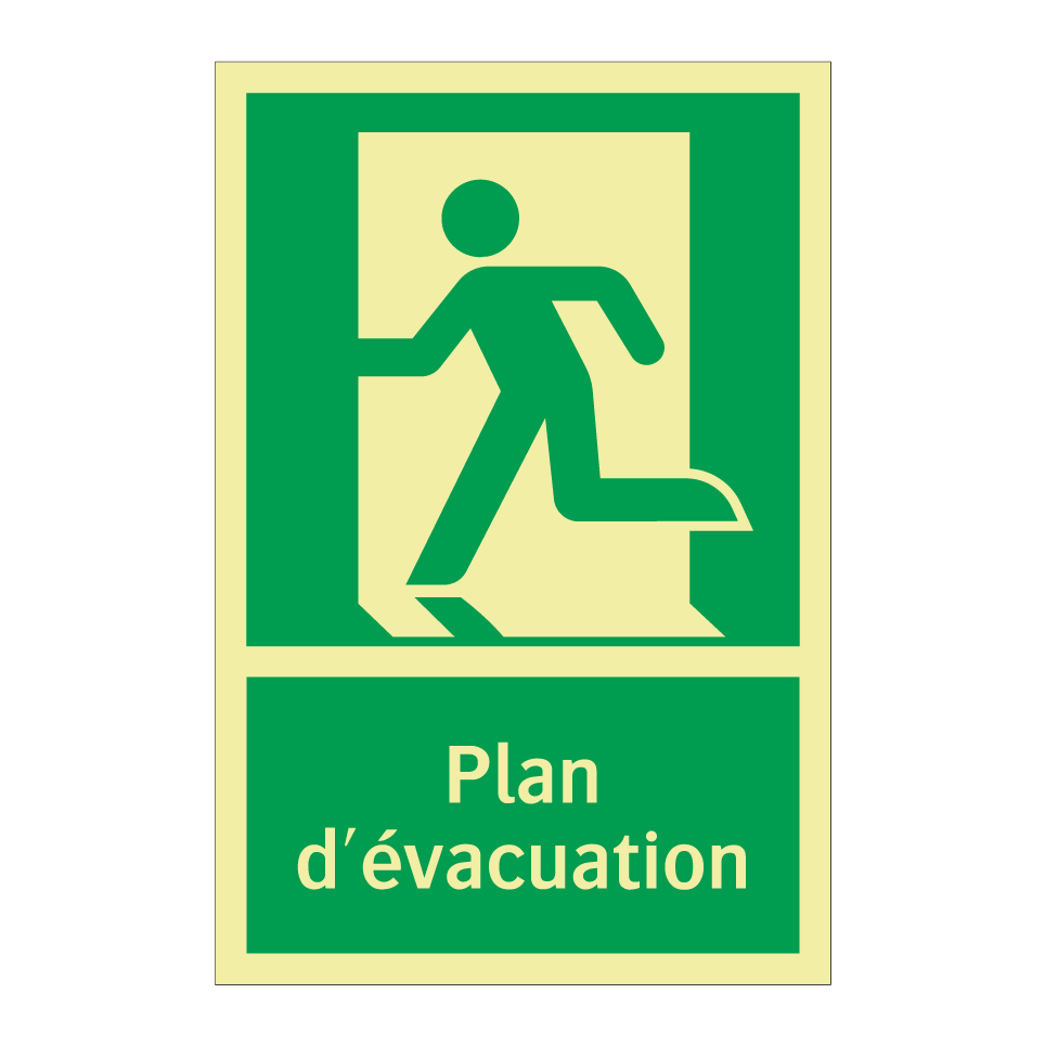 Panneau de secours avec le texte Plan d'évacuation et une symbolique claire