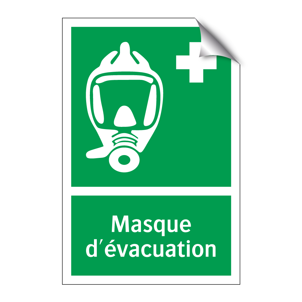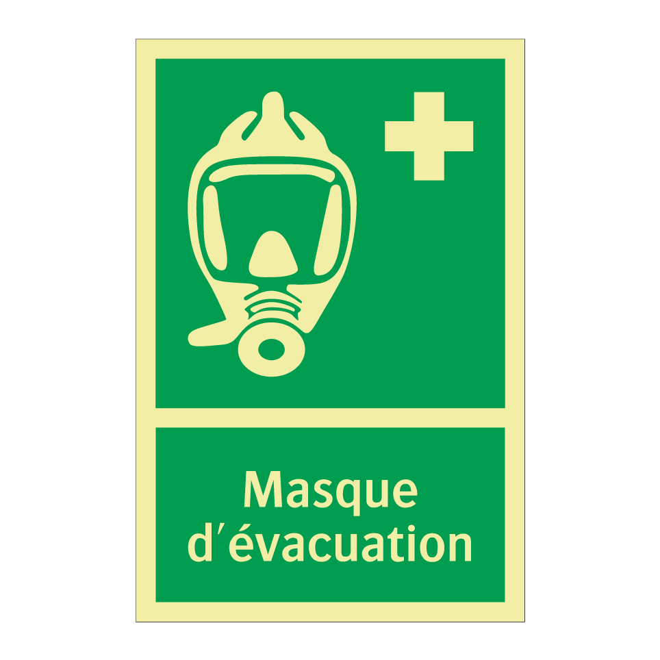 Panneau de secours avec le texte Masque d'évacuation et une symbolique claire