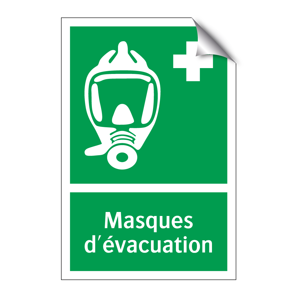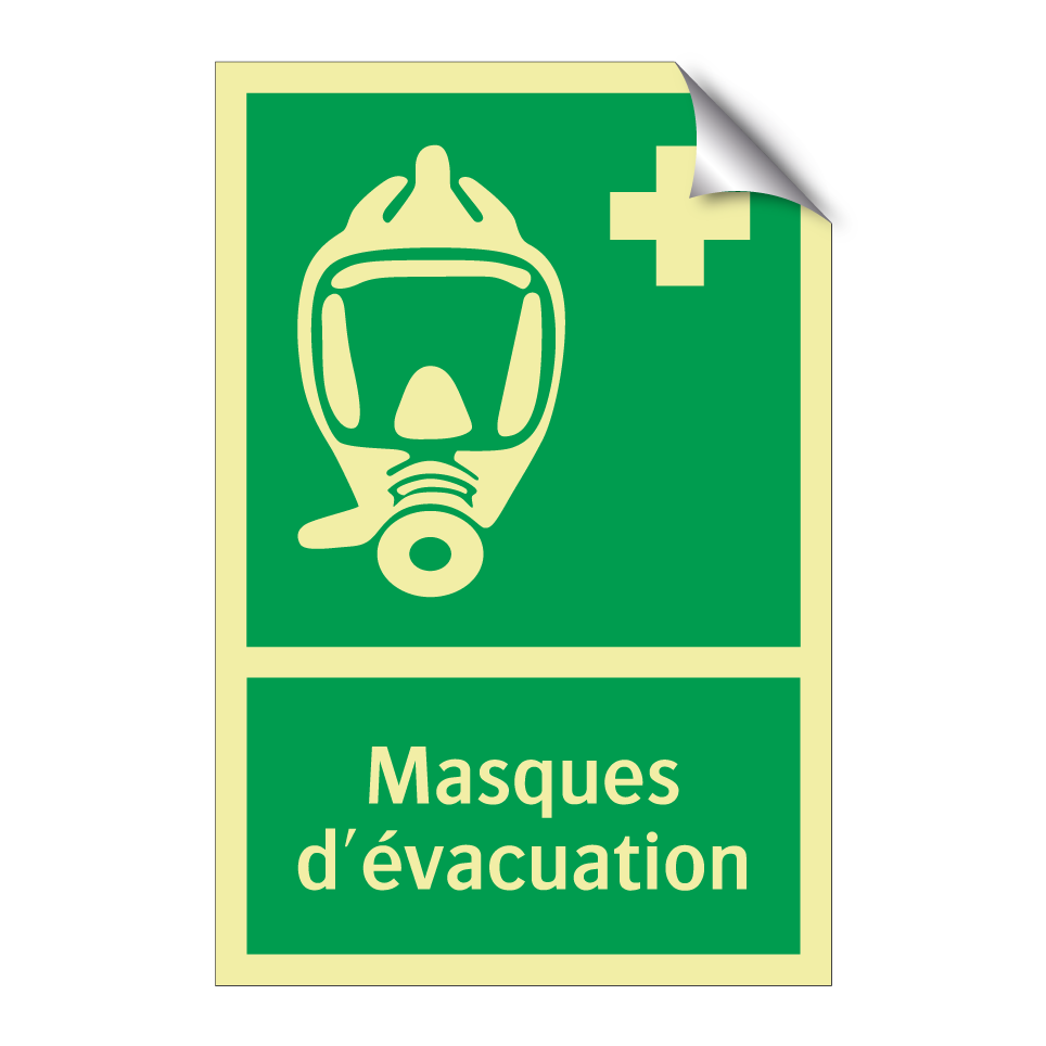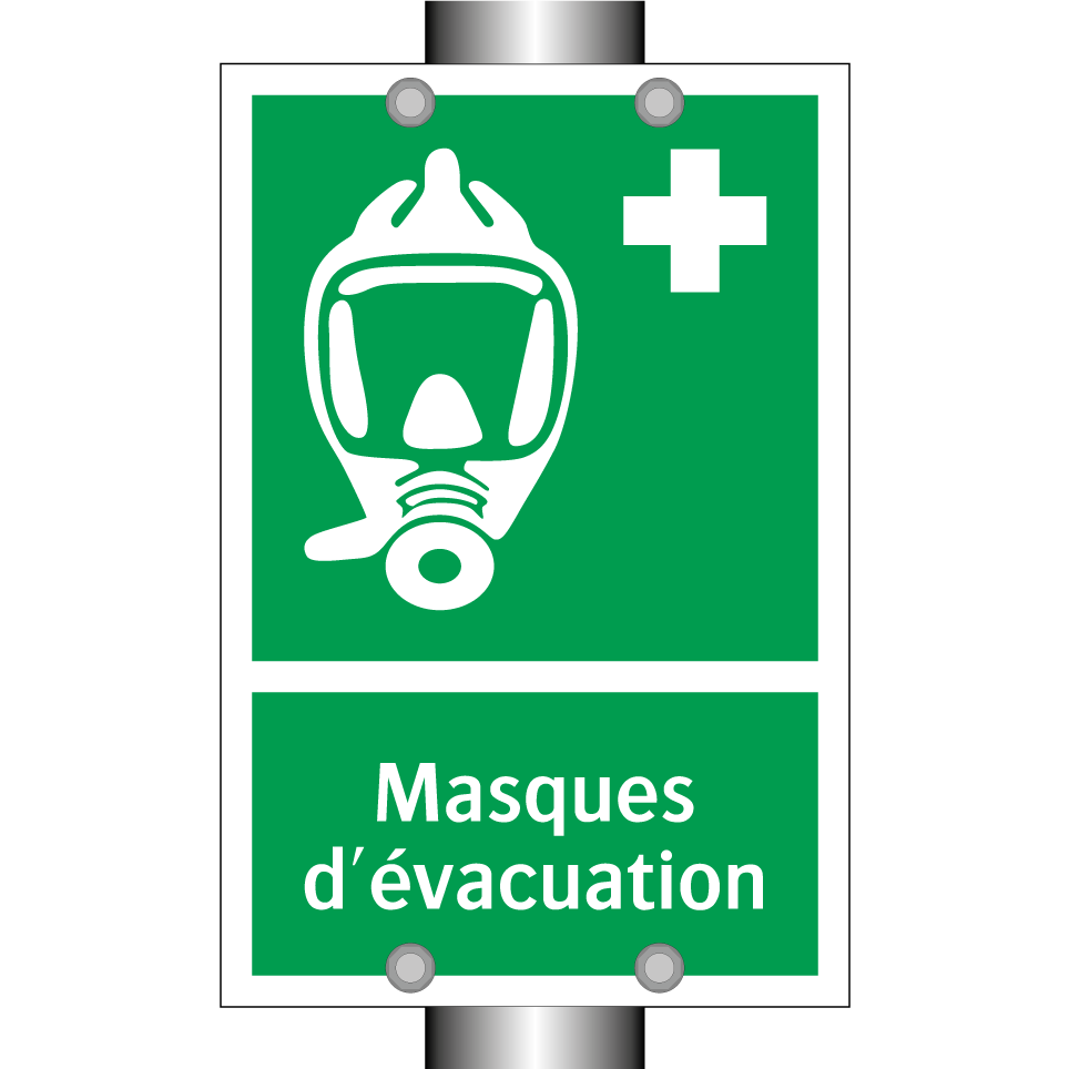 Panneau de secours avec le texte Masques d'évacuation et une symbolique claire
