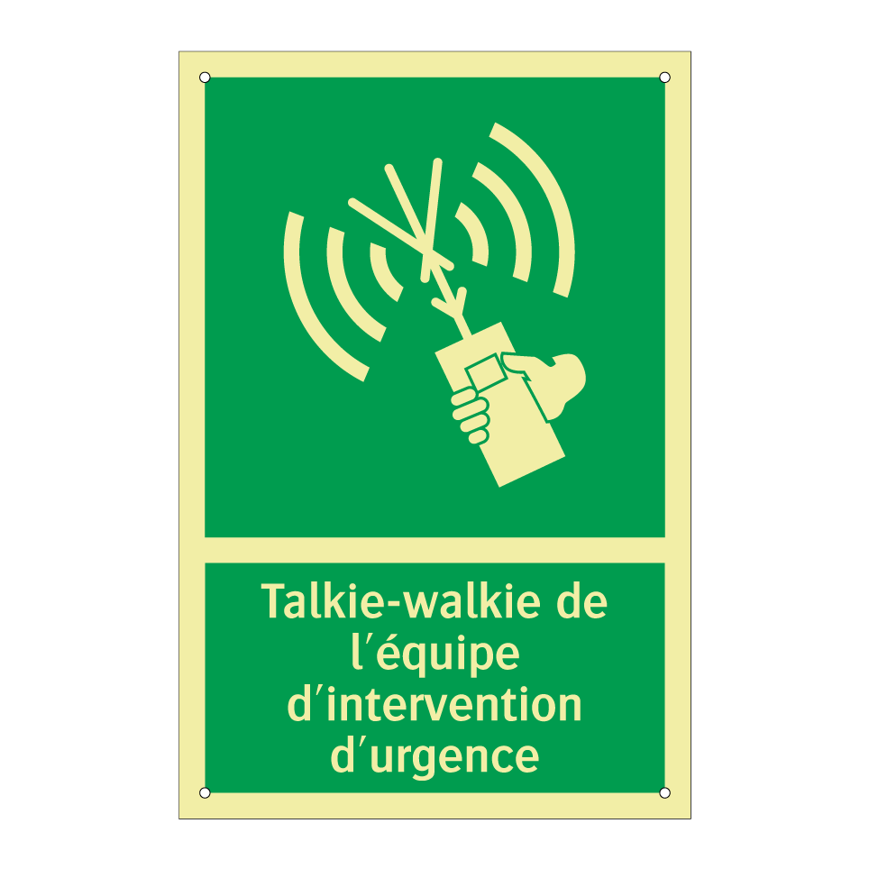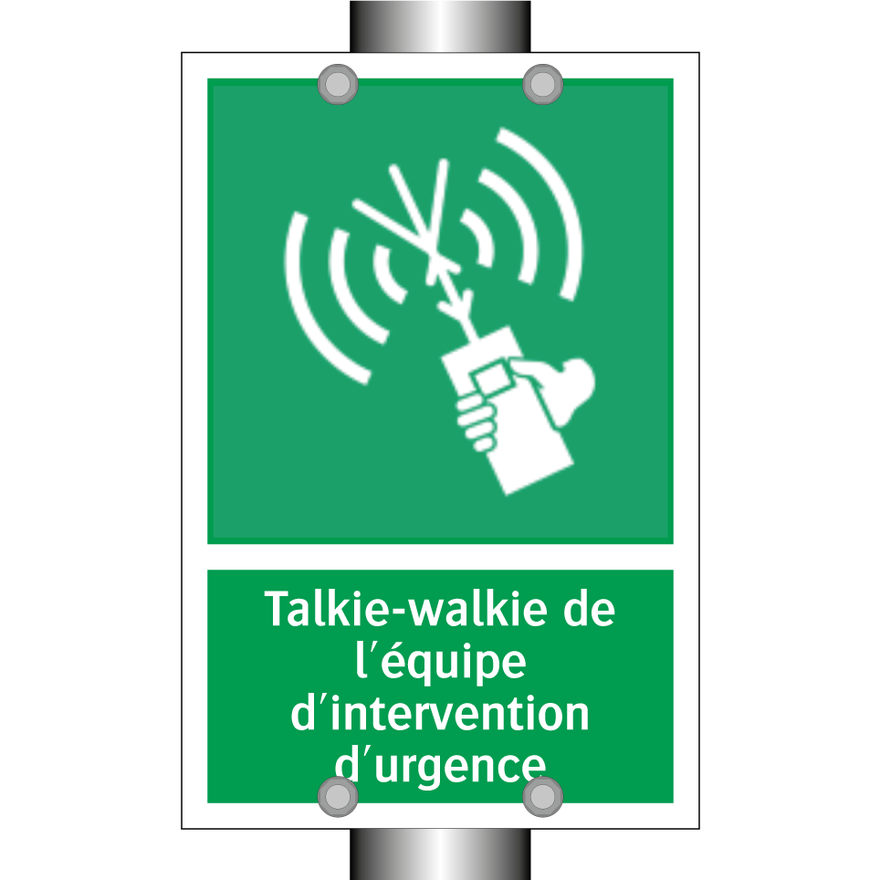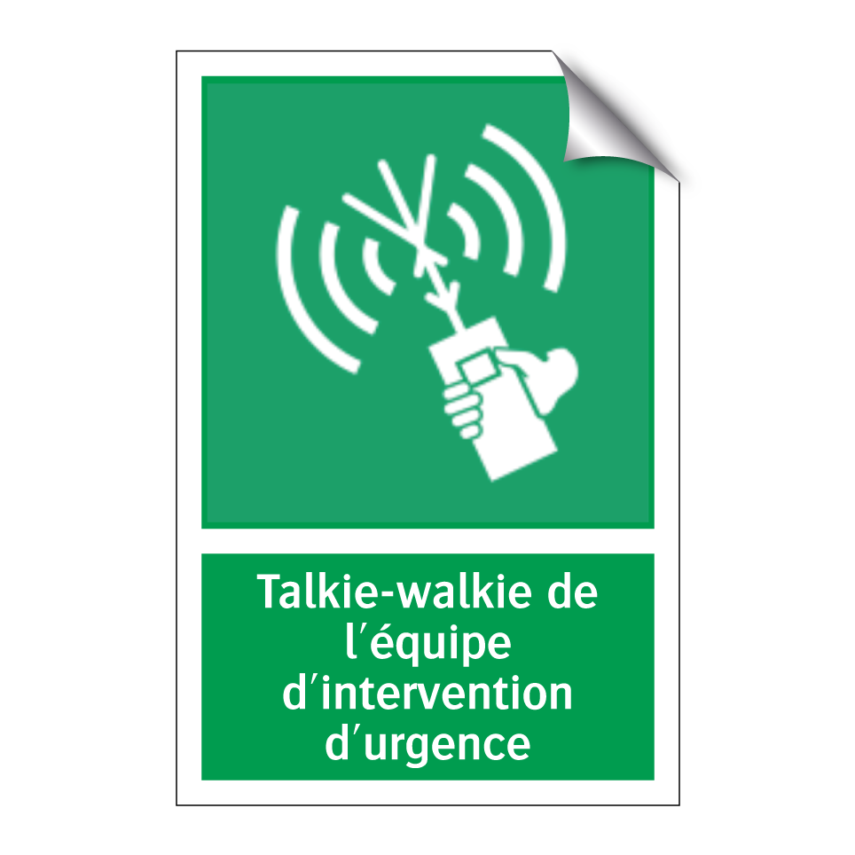 Panneau de secours avec le texte Talkie-walkie de l'équipe d'intervention d'urgence et une symbolique claire