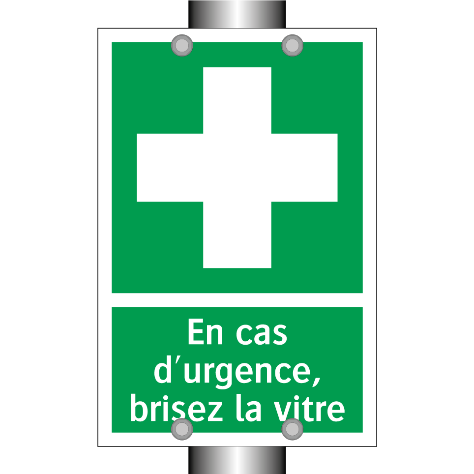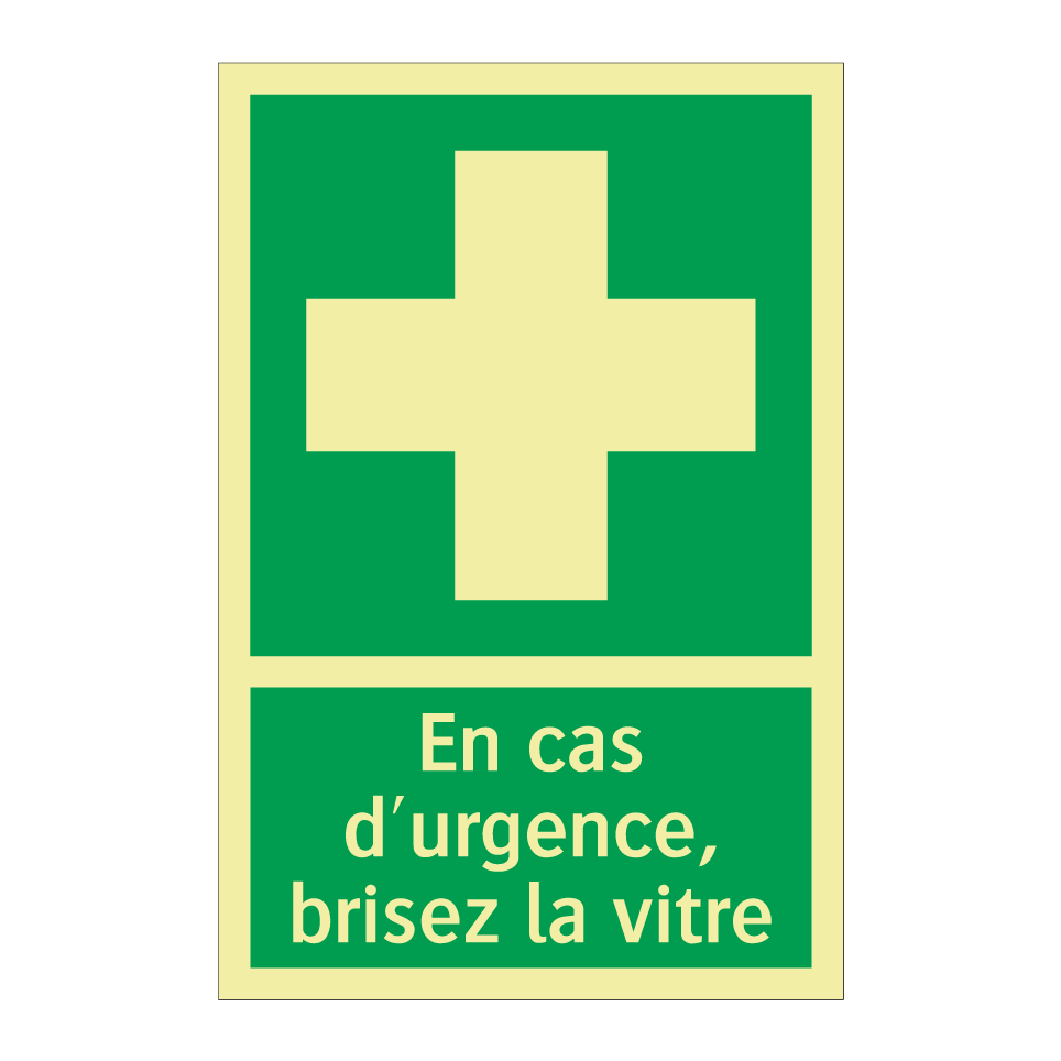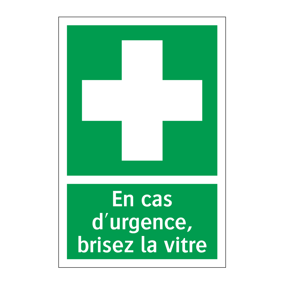 Panneau de secours avec le texte En cas d'urgence, brisez la vitre et une symbolique claire