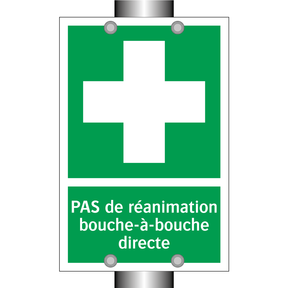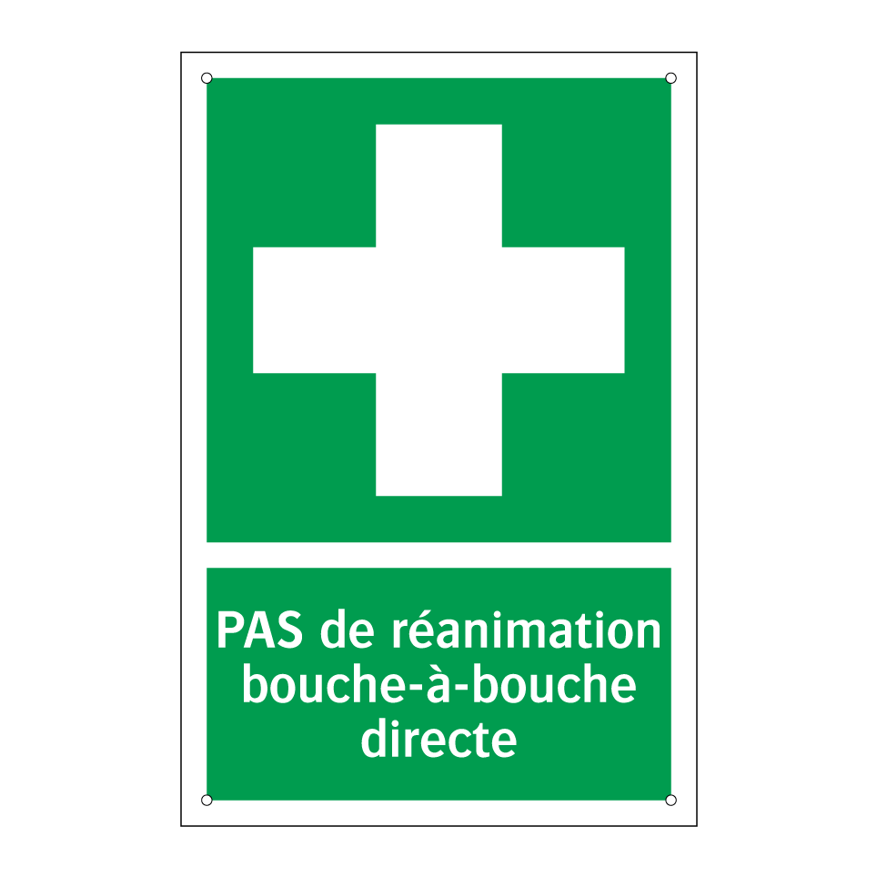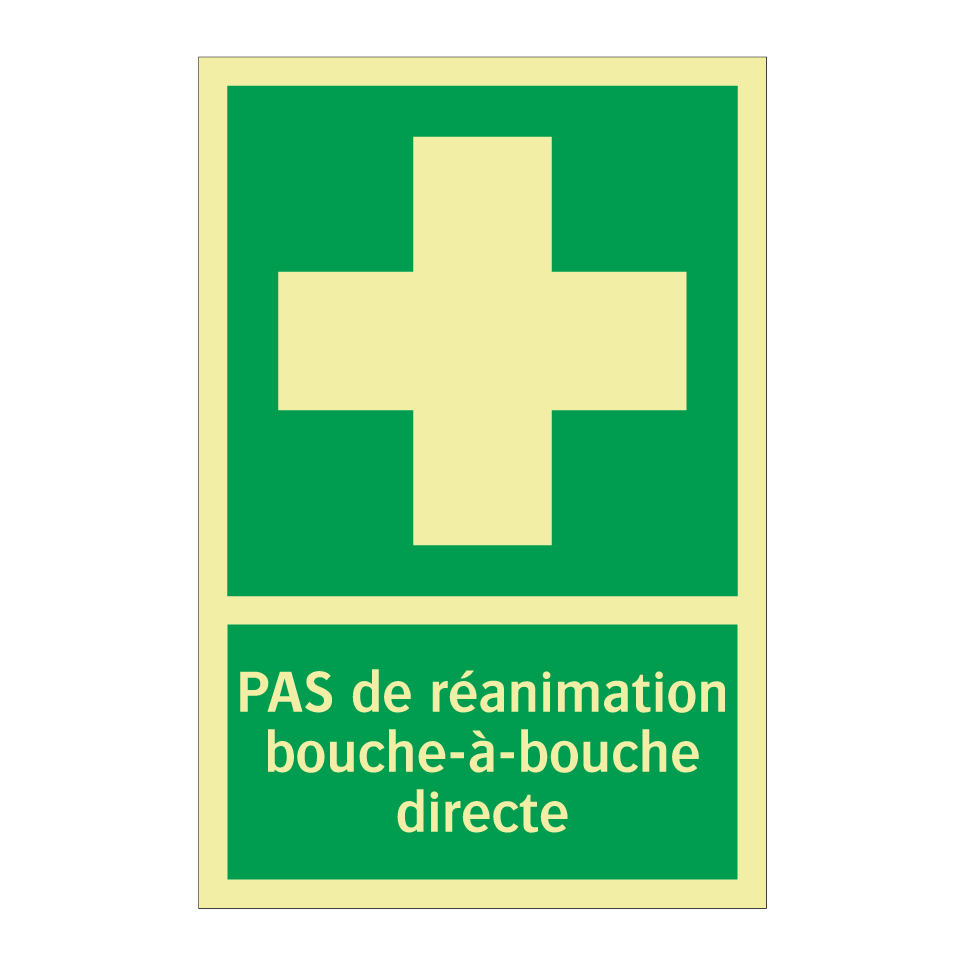Panneau de secours avec le texte PAS de réanimation bouche-à-bouche directe et une symbolique claire