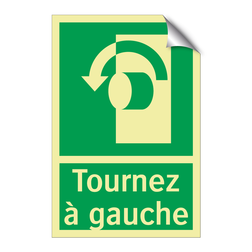 Panneau de secours avec le texte Tournez à gauche et une symbolique claire