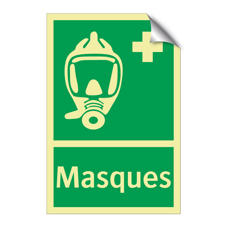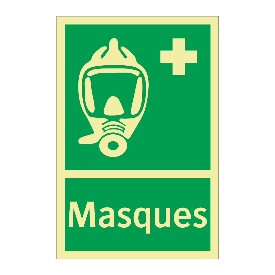 Panneau de secours avec le texte Masques et une symbolique claire